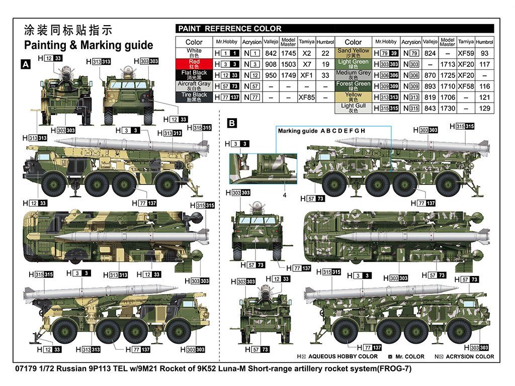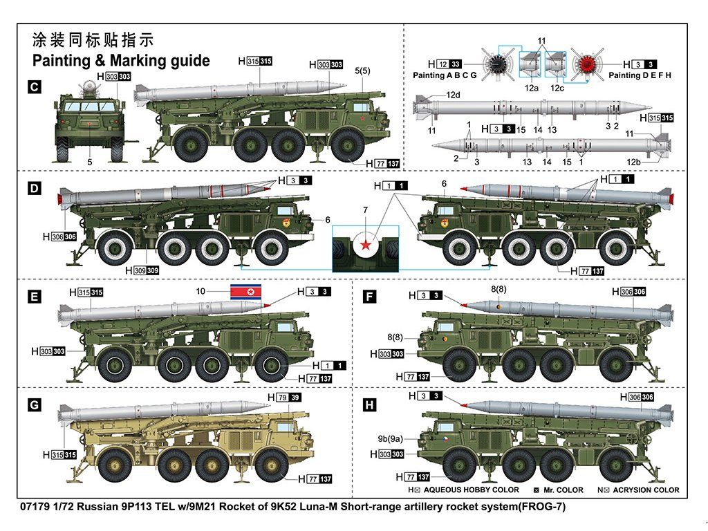 Russian 9P113 TEL w/9M21 Rocket of 9K52 Luna-M Short-range artillery rocket system (FROG-7) 1/72 Trumpeter 07179
