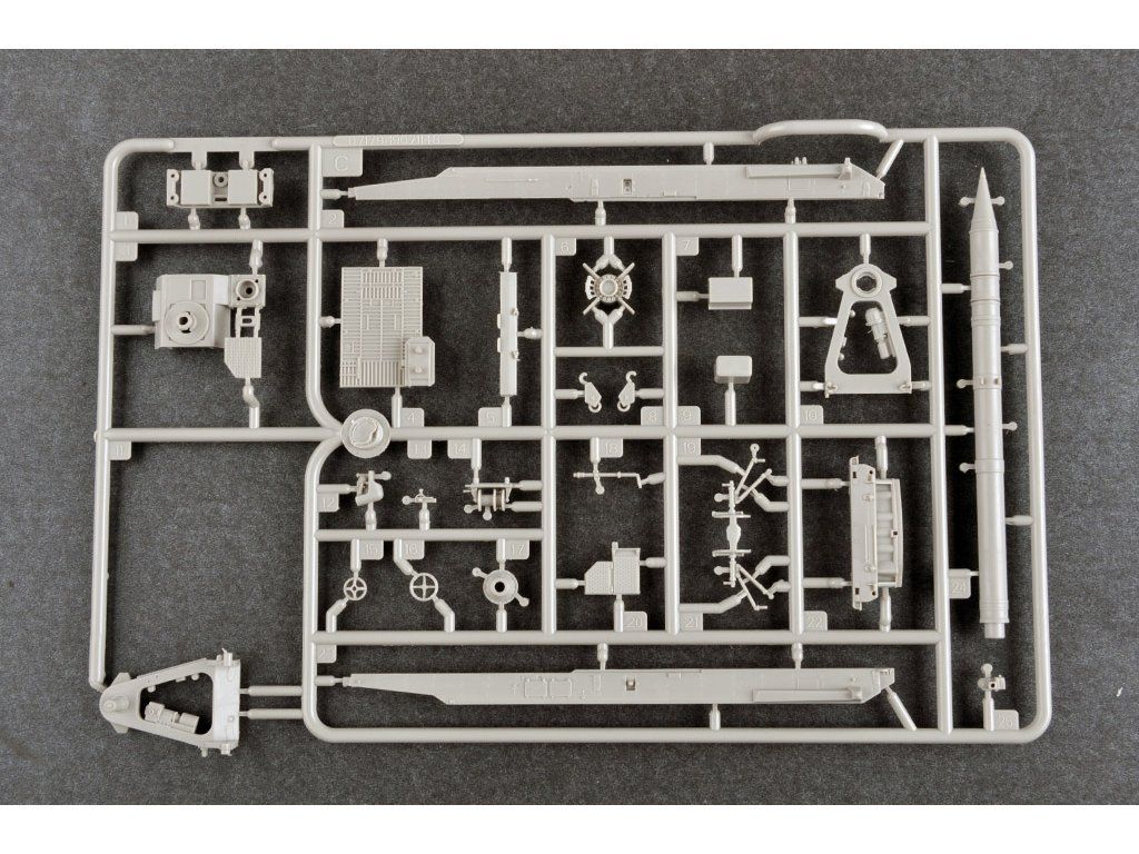 Stavebnica plastového modelu ruského delostreleckého raketového systému krátkeho dosahu z druhej polovice 60. rokov.