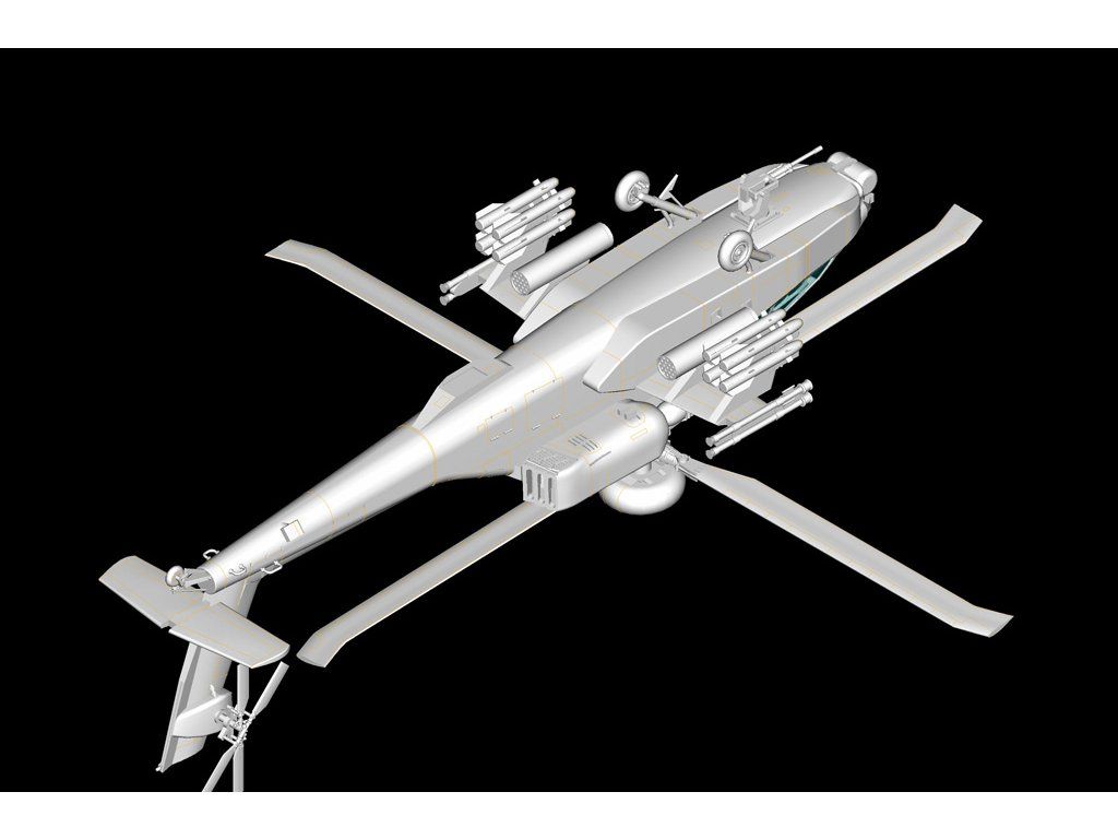 Stavebnice plastikového modelu amerického útočného vrtulníku.