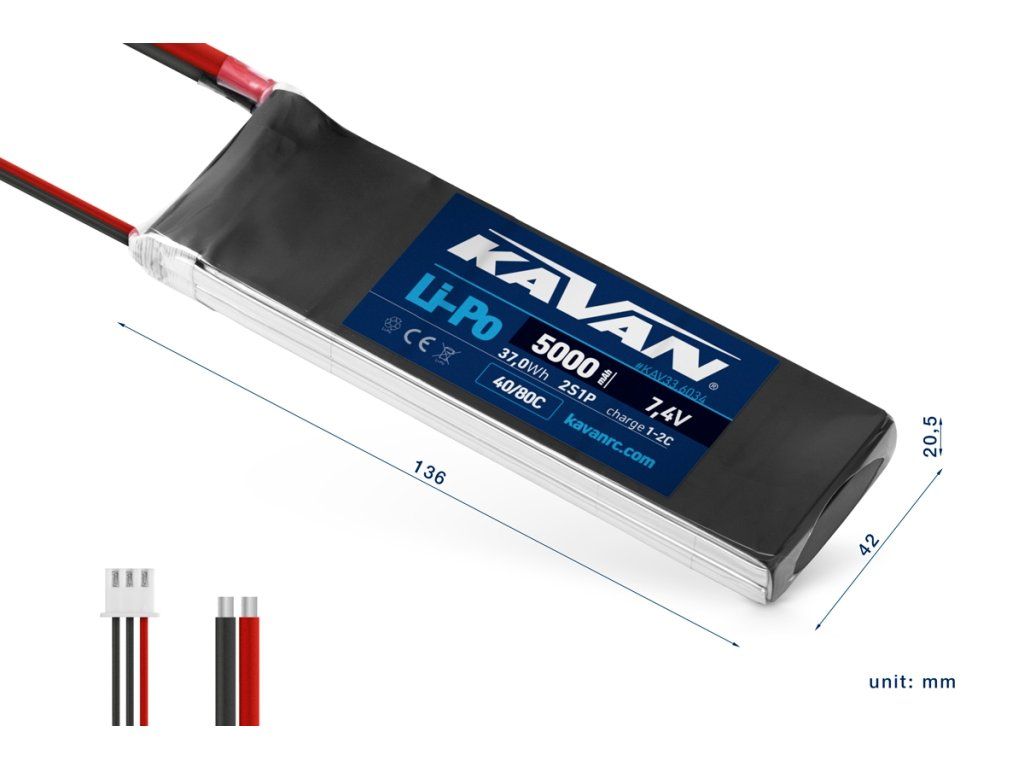 Akumulátor Kavan Li-Pol 5000mAh/7,4V 40/80C 37,0Wh Bez Konektoru