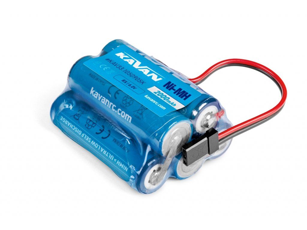Pětičlánková přijímačová NiMH akumulátorová sada 6,0 V 2000 mAh s kabelem se servokonektorem JR/UNI. Články KAVAN 1,2 V 2000 mAh s nízkým samovybíjením, Max. vybíjecí proud 6A, Max. nabíjecí proud 1A. Pyramidové uspořádání. Rozměry: 53,5x43,5x27,5mm. Hmotnost: 145 g.