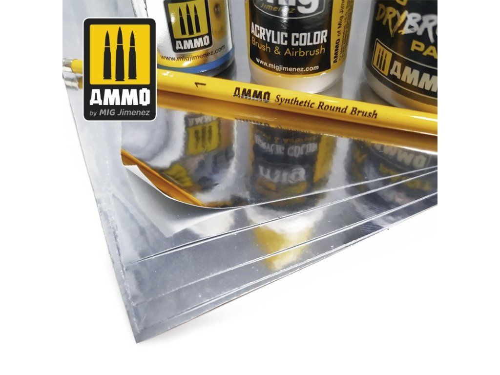 Tenká samolepící fólie pro věrnou imitaci chromovaných povrchů nebo lesklých kovových povrchů. Výborná je také pro imitaci zrcadel, ozdobných lišt a jiných detailů na modelech aut. Velice snadné použití. Jednoduše jen odstřihnete kousek požadované velikosti. Důkladně očistěte povrch alkoholem, odstraňte bílý ochranný papír a opatrně položte lepicí chromovou fólii na zvolené místo. Abyste ji přizpůsobili povrchu, stiskněte vatovým tamponem nebo pryžovým štětcem od středu k okrajům, dokud se fólie dokonale nepřizpůsobí detailům pod ní. Nikdy k tomuto účelu nepoužívejte kovové nástroje, abyste předešli poškození fólie, věnujte zvláštní pozornost odstranění vzduchových bublin, které zůstanou zachyceny pod povrchem. Přebytečné okraje můžete odříznout ostrou čepelí s jemným hrotem.