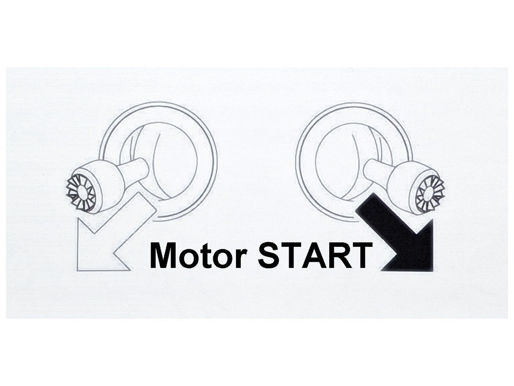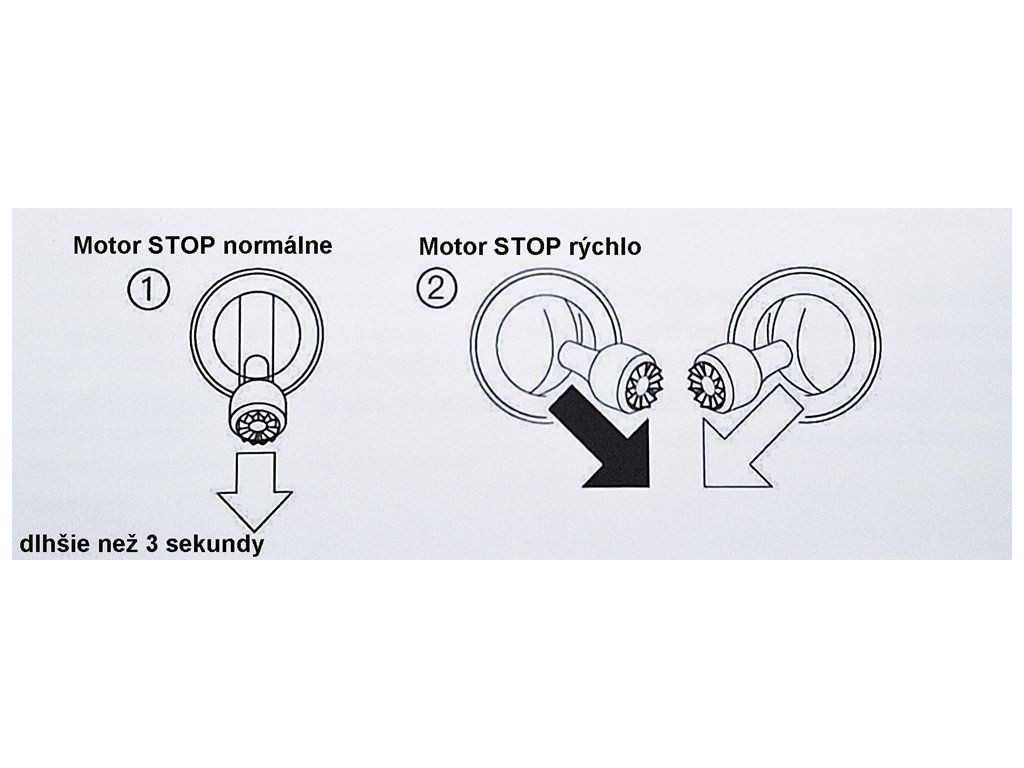 5. Odemkněte zámek motoru tak, že potáhnete obě páky k sobě a do protilehlých rohů. Rotor se roztočí.