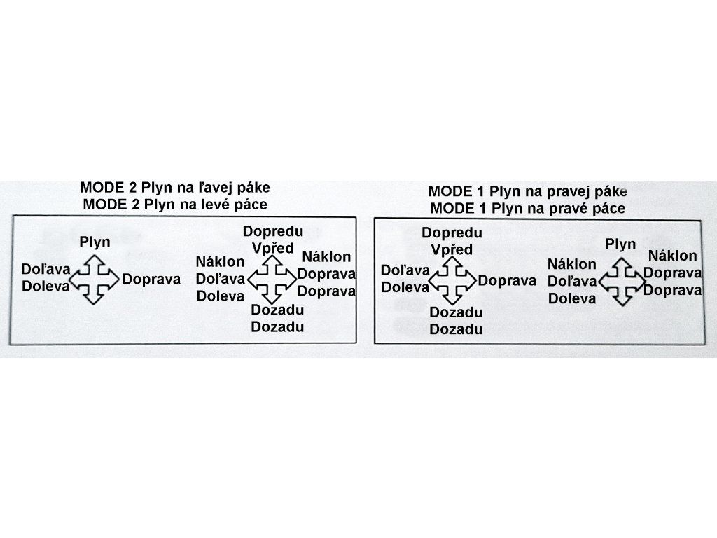 Dálkové ovládání: 2,4 GHz, 6 kanálů, režim 2 a režim 1