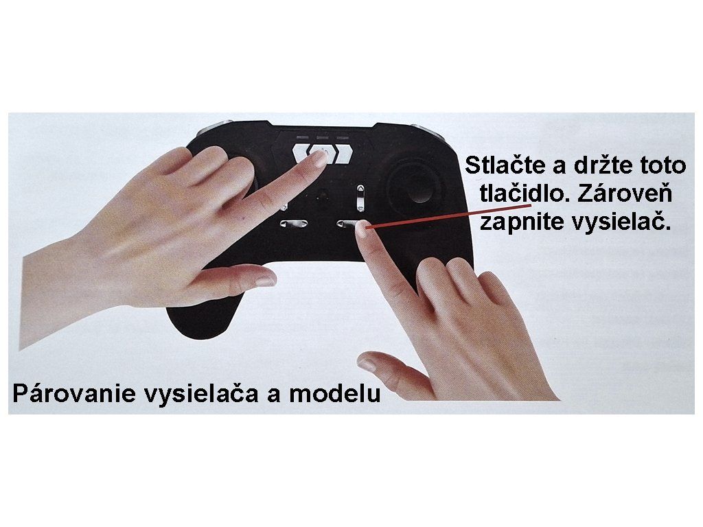 2,4 GHz vysílač s ergonomickými páčkami pohodlně padne do ruky a má různé letové režimy pro začátečníky a pokročilé. Umožňuje přepnutí režimu 2 do režimu 1. Další skvělou funkcí je stabilizovaný obrácený let stisknutím tlačítka, který můžete aktivovat z výšky cca 9 metrů, abyste si na takový obrácený manévr zvykli. Automatický vzlet a automatické přistání jsou také funkce RC modelu.