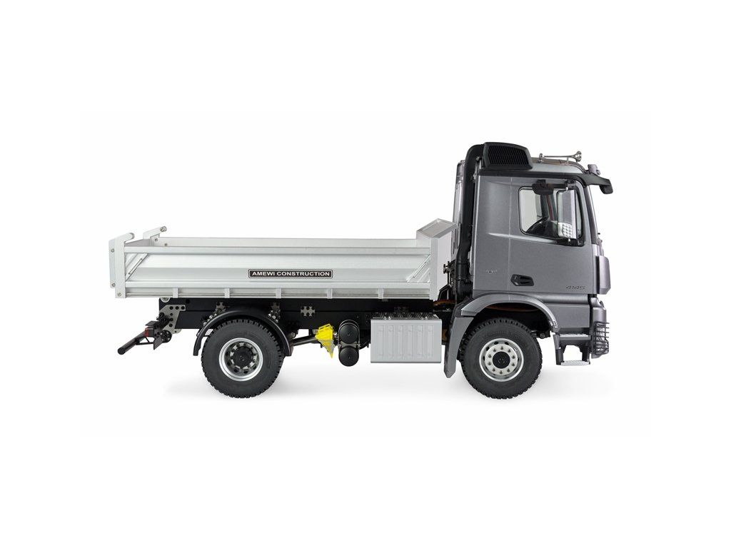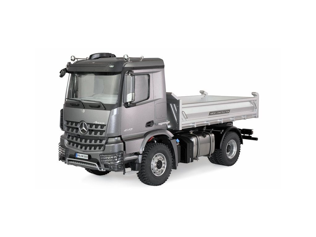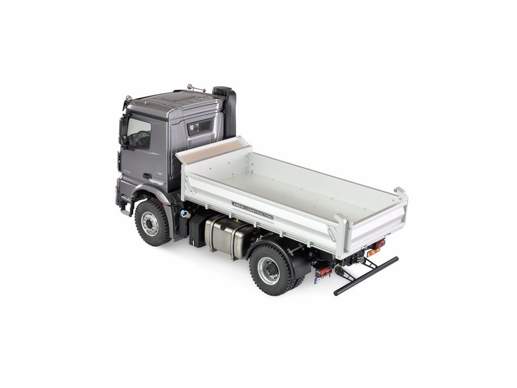 Exkluzivně licencovaný nákladní vůz ze série Mercedes AROCS, který zaujme jako model 4x2 s hydraulicky ovládanou funkcí sklápění a díky detailnosti v měřítku 1:14 zrychlí tep modelářů. Všechny funkce vozidla o hmotnosti 6,9 kg lze ovládat pomocí vysílače. Podvozek, karoserie, celé hnací ústrojí a všechny hřídele jsou kovové. To zaručuje maximální životnost komponent. Kabina řidiče s kompletním interiérem a gumové pneumatiky s vysokou přilnavostí na ráfcích vyrobených z kovu dotváří kvalitní vzhled.
