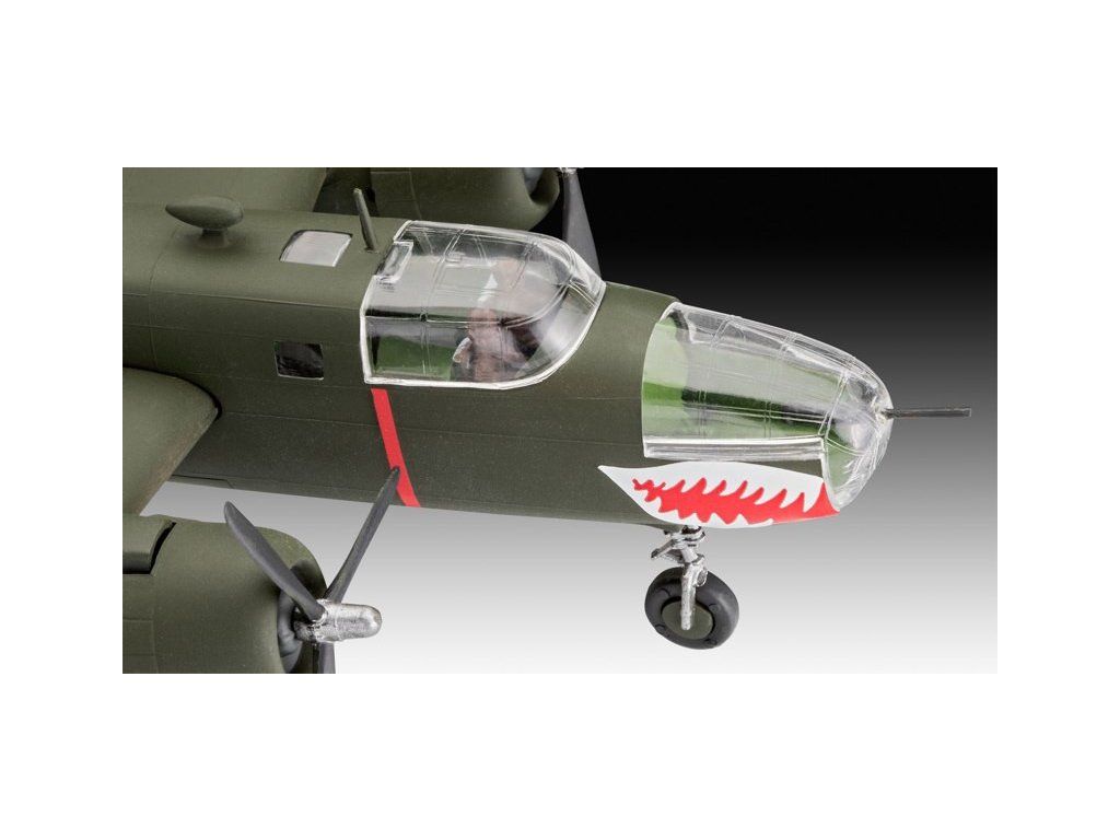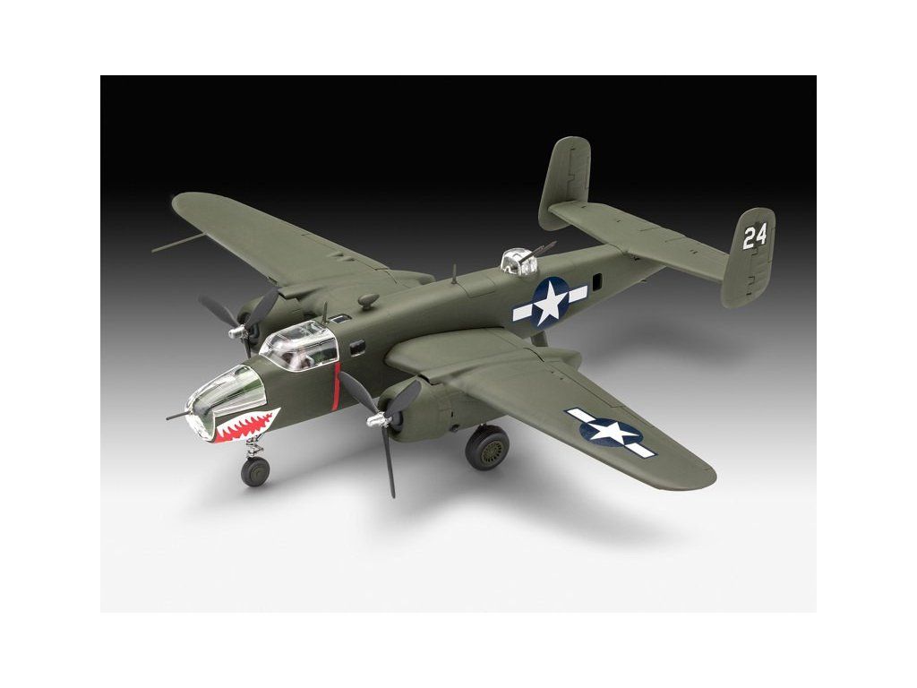 Stavebnice plastového modelu amerického středního bombardéru z druhé světové války. Konstrukce modelu umožňuje postavení modelu bez použití lepidla, barevné díly není třeba dále malovat.