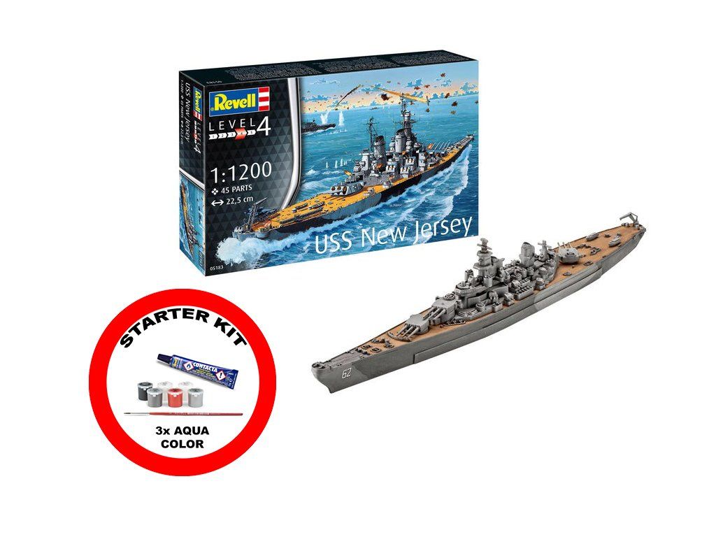 Stavebnice plastikového modelu americké bitevní lodi z druhé světové války. Součástí stavebnice jsou také 3 akrylové barvy, lepidlo a štětec.