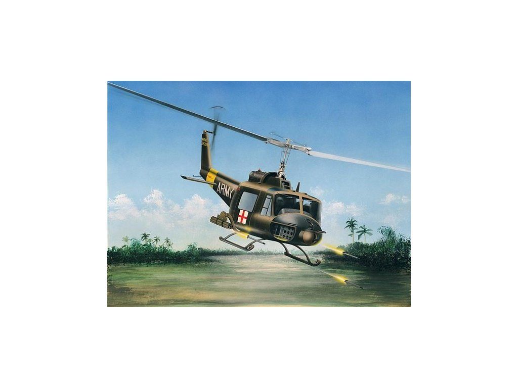 Stavebnice plastikového modelu amerického víceúčelového vrtulníku z období války ve Vietnamu.