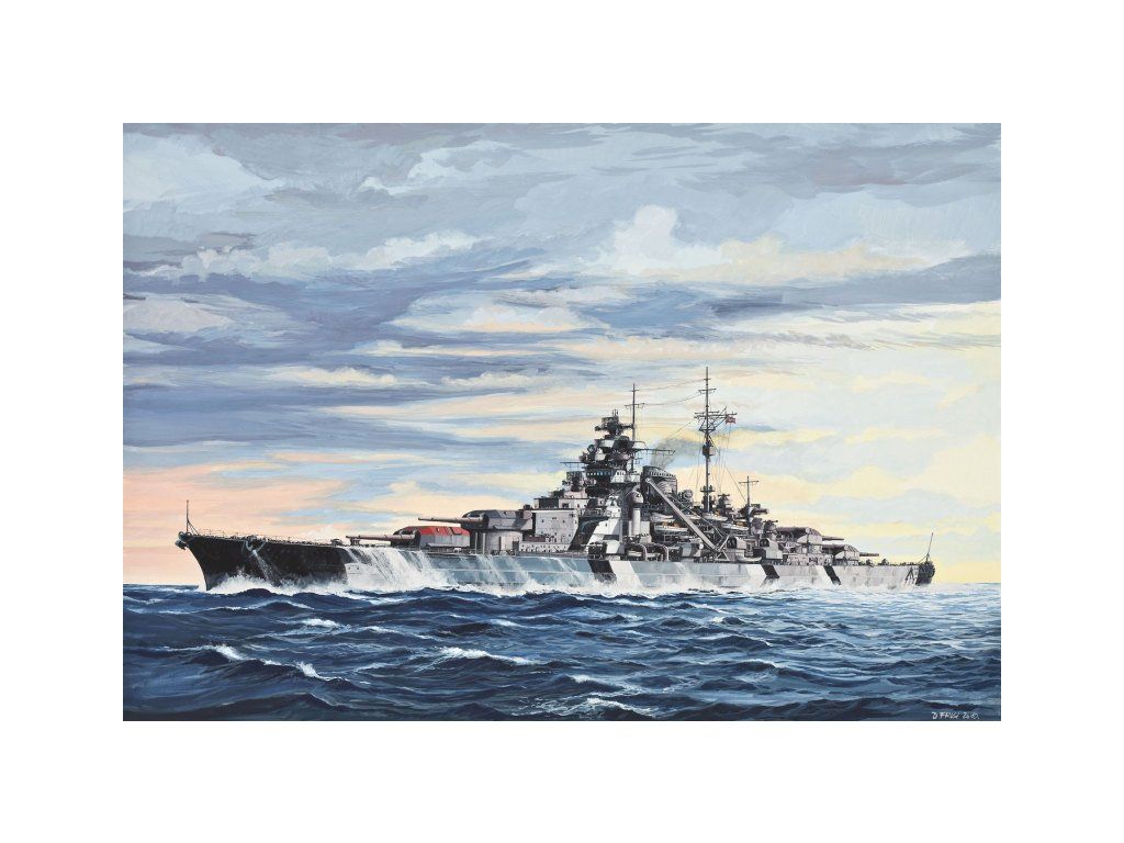 Stavebnica plastového modelu najväčšej nemeckej bitevnej lode z obdobia 2. svetovej vojny, sesterskej lode Tirpitz.