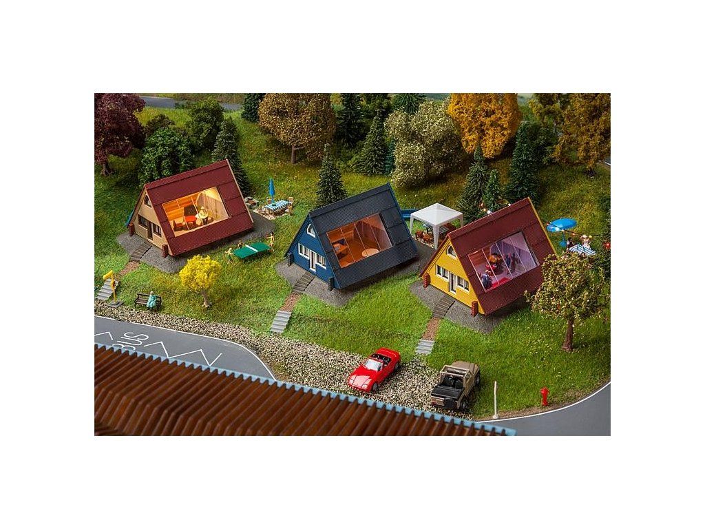 Každá stavba se dá oživit montáží osvětlení. Nejčastěji se používají již hotové osvětlovací LED sady. Součástí většiny stavebnic jsou papírové vnitřní stěny, které slouží pro odstínění místností tak, aby světlo neprosvítalo přes plastové stěny. Zkušenější modeláři umí upravit vnitřek domku tak, aby svítila jen některá okna. Případně s použitím doplňkové elektroniky lze dosáhnout střídavého osvětlení různých oken, nebo imitace zapnutého televizoru.