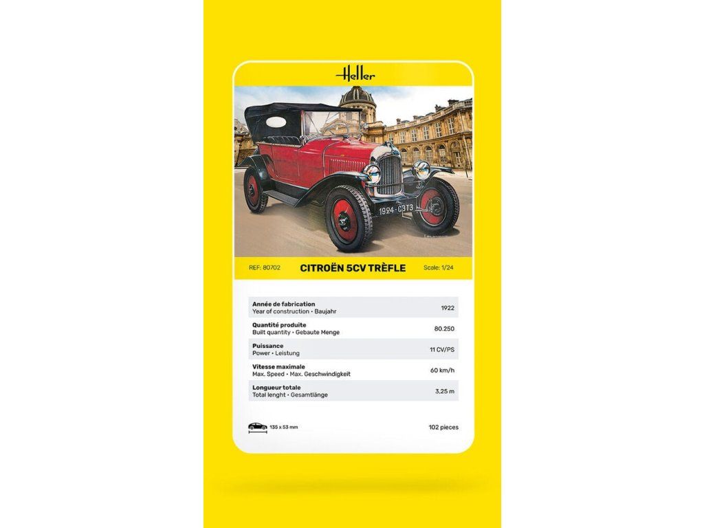 Stavebnice plastikového modelu francouzského osobního automobilu z období 20. let 20. století.