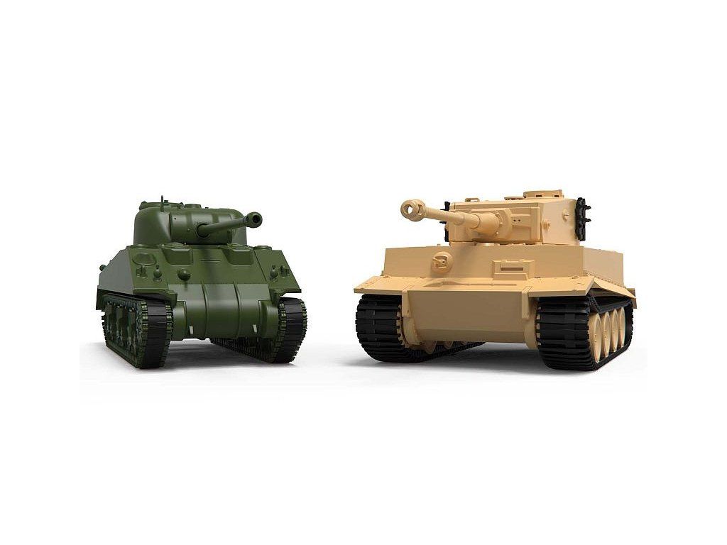 Sada dvou stavebnic plastových modelů legendárních tanků z období 2. světové války, protivníků, kteří se potkávali na bojišti. sada obsahuje také základní barvy, lepidlo a štětec.