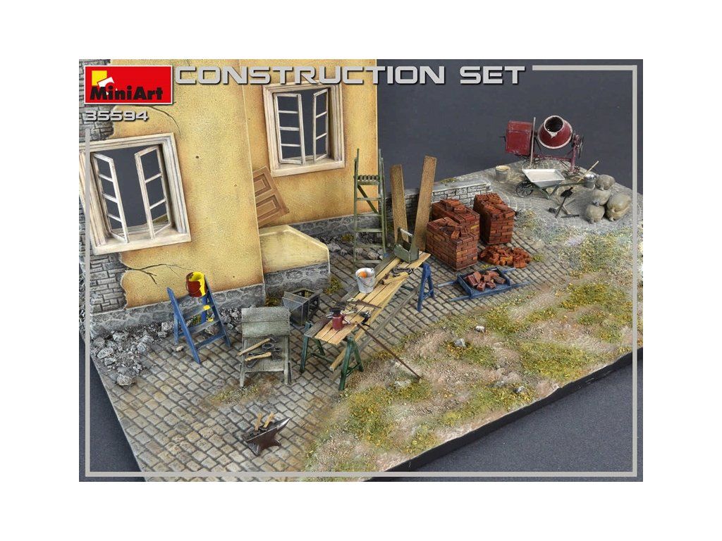 Stavebnice plastikových modelů stavbařské míchačky a stavbařského nářadí. Výborný doplněk do diorámy s civilní i válečnou tématikou se širokým rozsahem historických období.