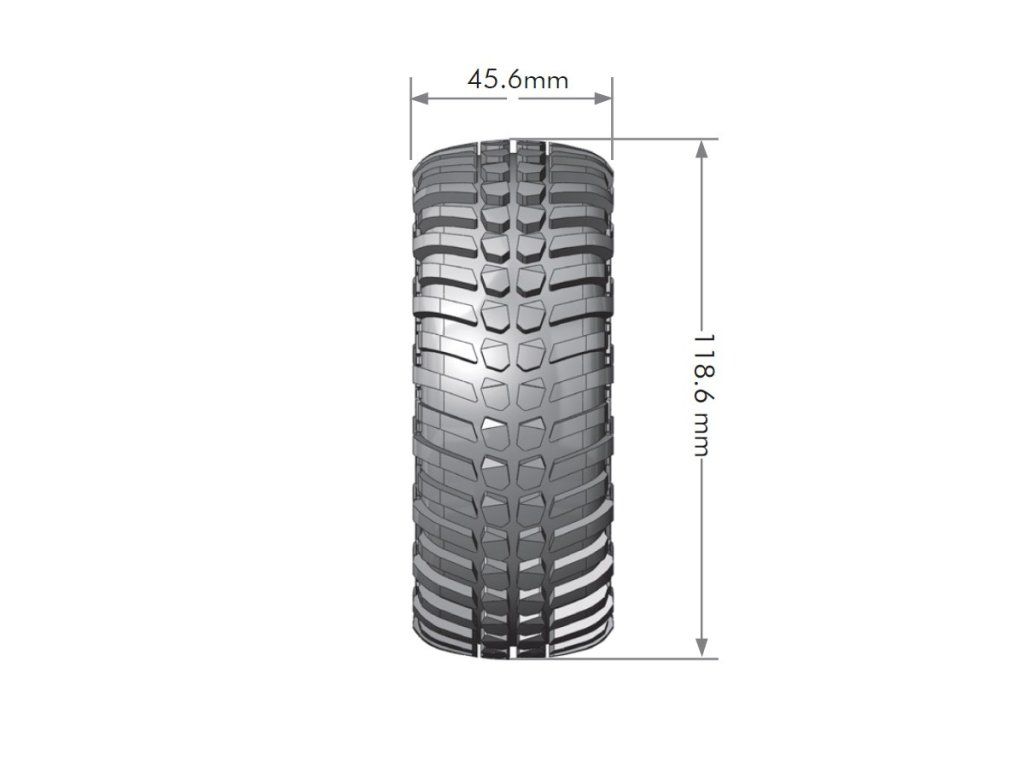 Kompletní kola pro crawler/expedition auta v měřítku 1/10. Univerzální pneumatiky vhodné do suchého i mokrého prostředí a na jakýkoli povrch.