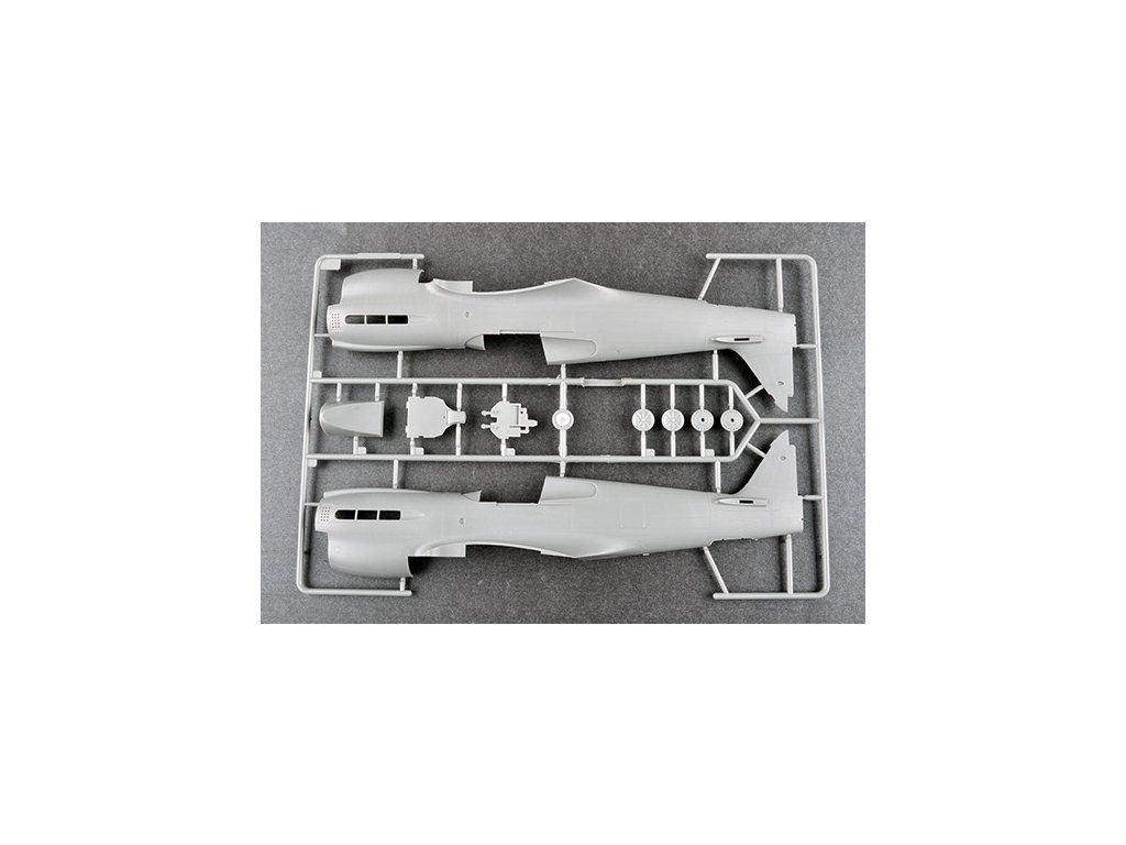 Stavebnice plastikového modelu amerického stíhacího letadla z období 2. světové války. Stavebnice obsahuje také kovové fotoleptané díly.