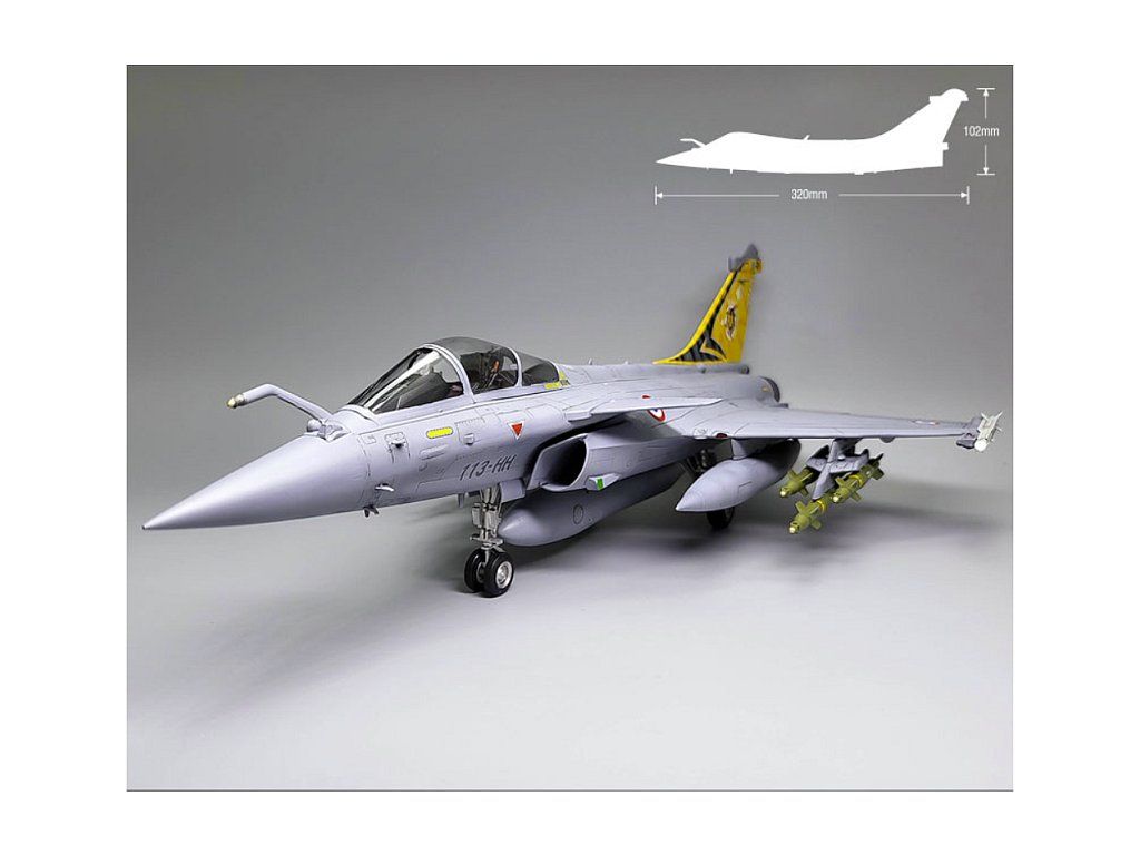 Stavebnice plastikového modelu moderního francouzského stíhacího a útočného letadla.