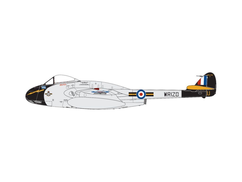 Stavebnice plastikového modelu jednoho z prvních britských letadel poháněného proudovým motorem z období 2. světové války.