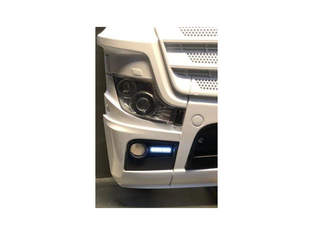 Pár denních světel pro ACTROS GIGASPACE (TAMYA). Jednoduchou úpravou nahradíte nefukční denní světla v masce novými plně funkčními. Dodáváno sestaveno, v každém světle 5 oranžových LED. Přiložené rezistory pro 7,2V i 12V.