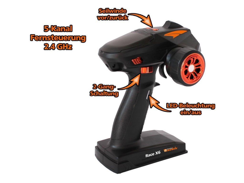 Kanál 5 - spínaný kanál ovládaný 2 tlačidlami pre ovládanie malého elektromotoru (dopredu/dozadu), napríklad navijaku.