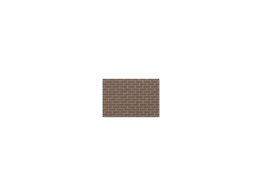 Plastová fólia s plastickým reliéfom typu "červená tehla" je vhodná napríklad na znázornenie holej tehlovej steny, alebo aj dlažby na chodníku v dioráme.