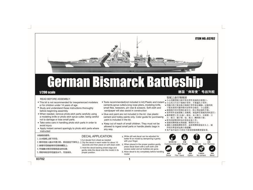 DKM Bismarck Battleship 1/200 Trumpeter 03702