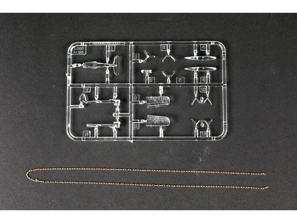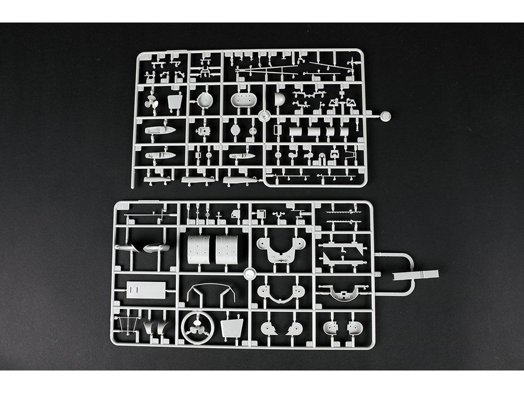 Stavebnica plastového modelu nemeckej vojenskej lode z obdobia druhej svetovej vojny.