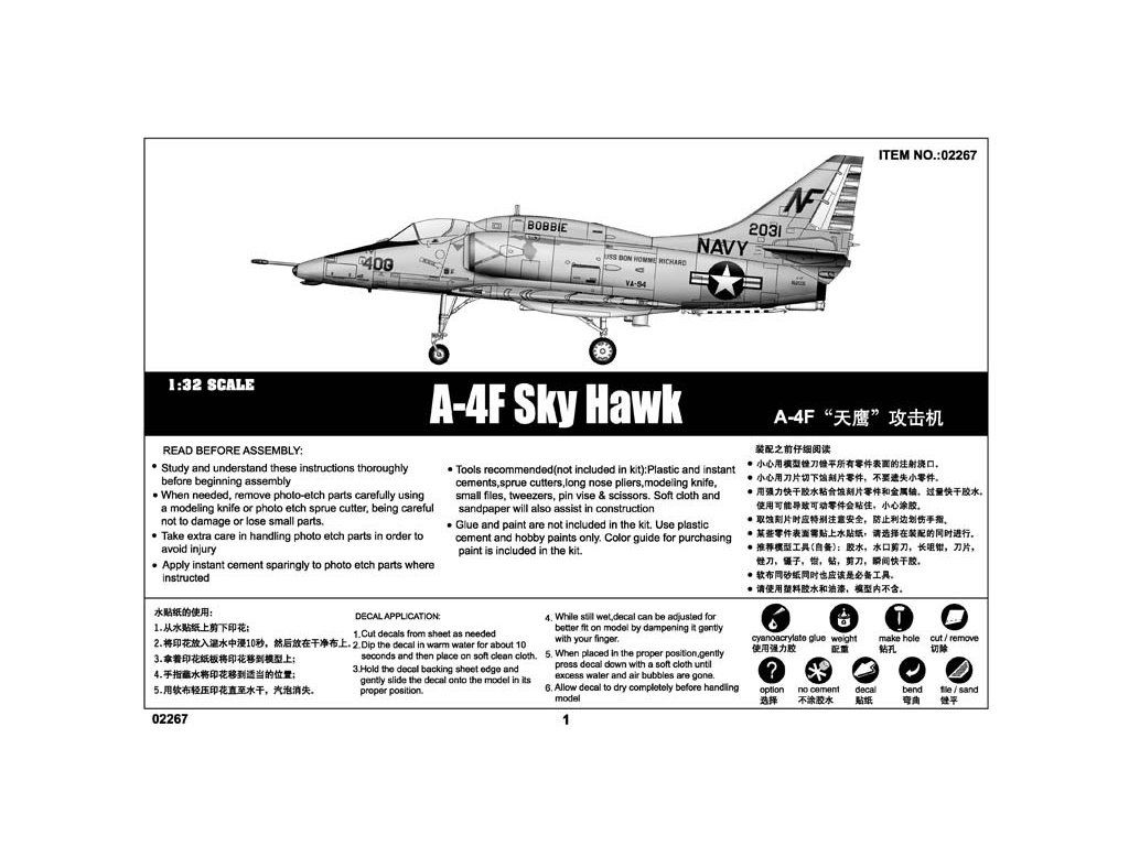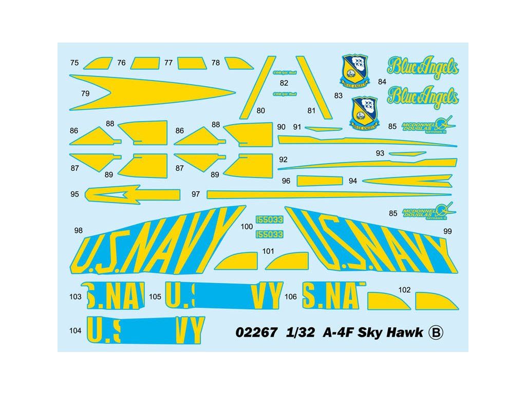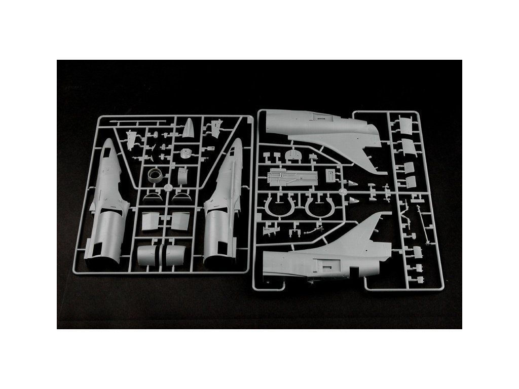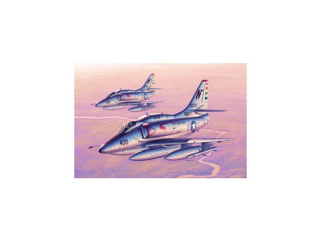 Stavebnice plastikového modelu amerického námořního útočného letadla. Stavebnice obsahuje také kovové a pryžové díly.
