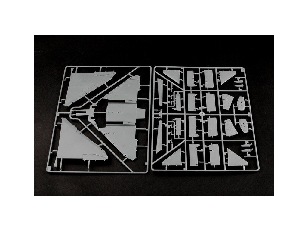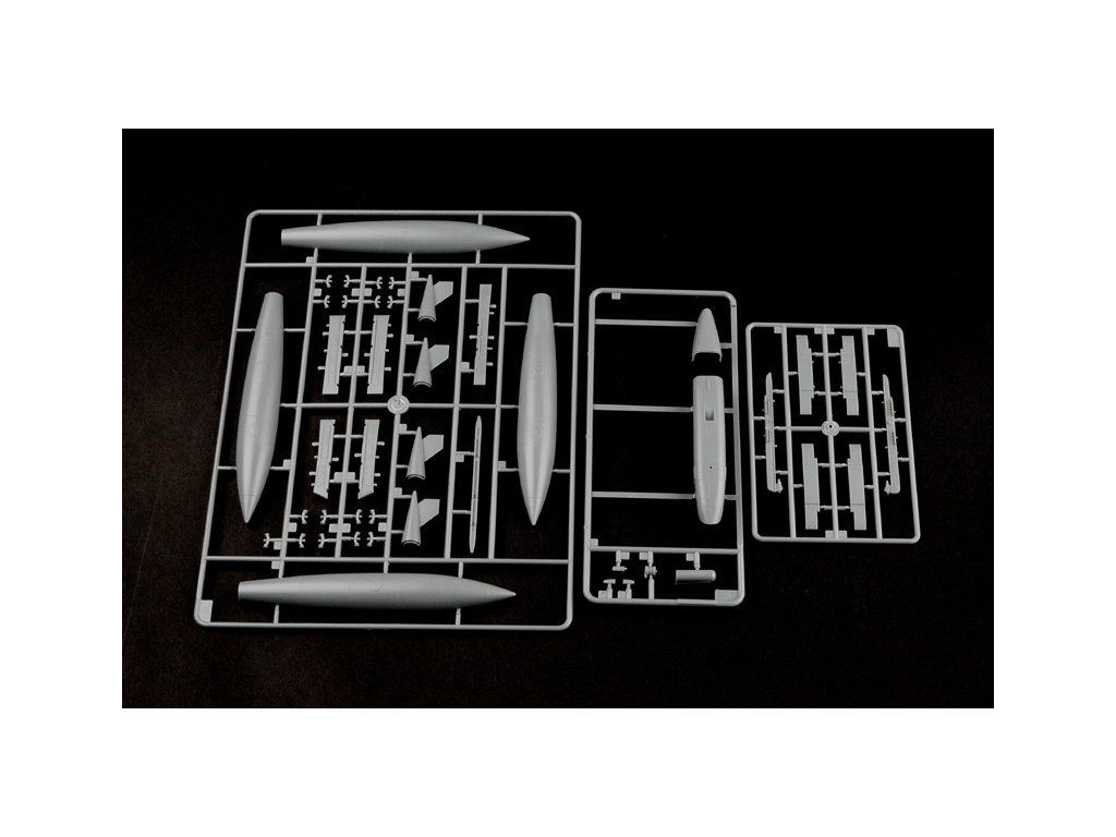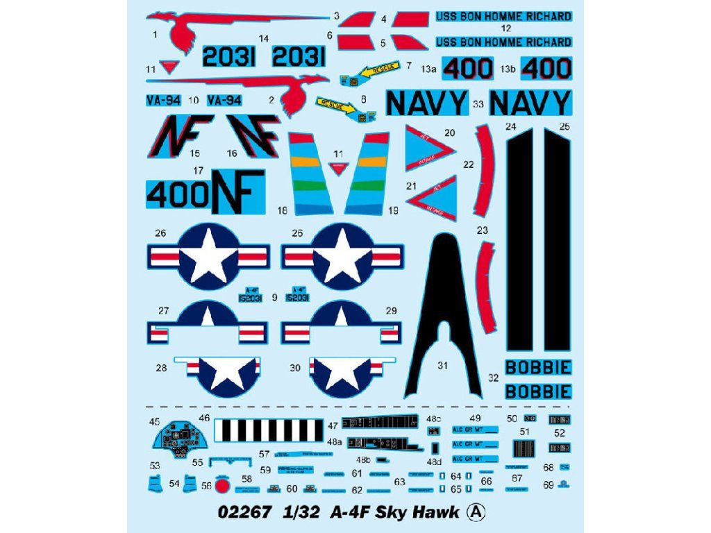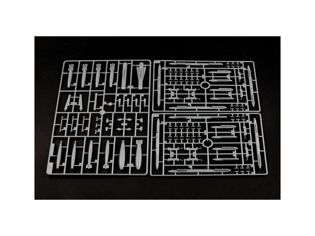 Stavebnice plastikového modelu amerického námořního útočného letadla. Stavebnice obsahuje také kovové a pryžové díly.
