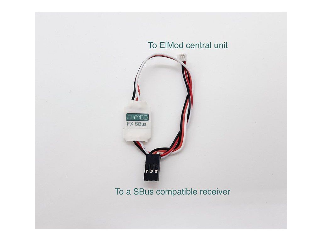 ElMod FX SBus je adaptér na pripojenie prijímača kompatibilného s SBus k centrálnej jednotke ElMod FusionX alebo ElMod 4WD.