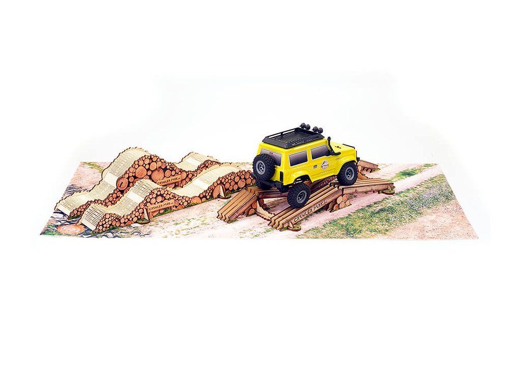 Stavebnice překážky určená pro modely expedičních a crawler aut na dálkové ovládání. Je vyrobena 100% z laserem vyřezávaných dřevěných dílů, které vyndáte z plátu pouze mírným zatlačením. Ke stavbě překážky není nutné lepidlo a všechny díly do sebe snadno zapadají. Návod na stavbu je vyobrazen na plátě prostřednictvím QR kódu, který jen jednoduše před zahájením stavby naskenujete.