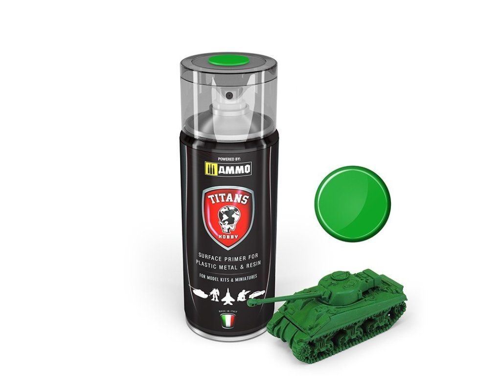 Řada základních barev ve spreji Titans Hobby určená pro přípravu povrchu před aplikací vrchní vrstvy barvy. Vyrábí se s použitím nejlepších materiálů a pigmentů a skvěle se hodí na všechny kovové, plastové nebo pryskyřičné modely. Všechny základní nátěry jsou na bázi akrylu, matné (kromě kovových barev) a rychleschnoucí.