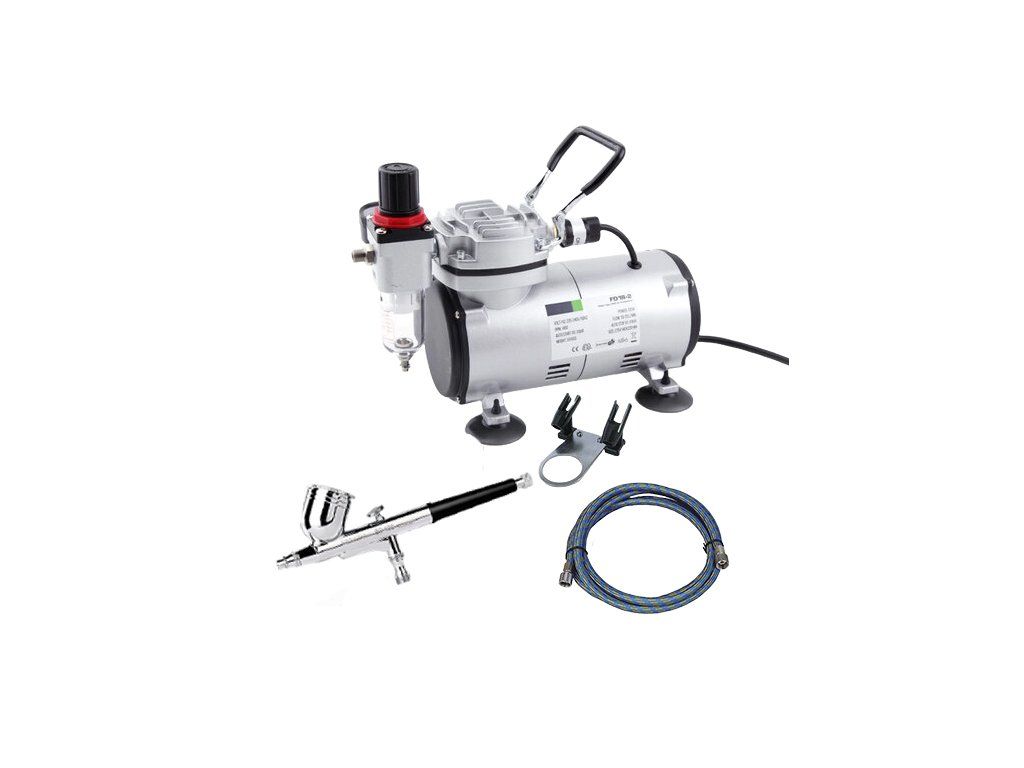Bezolejový pístový airbrush kompresor. Plně kompatibilní pro stříkací pistole značek Fengda, Royalmax, Chromax, Sparmax, Badger, Revell a mnoha dalších.