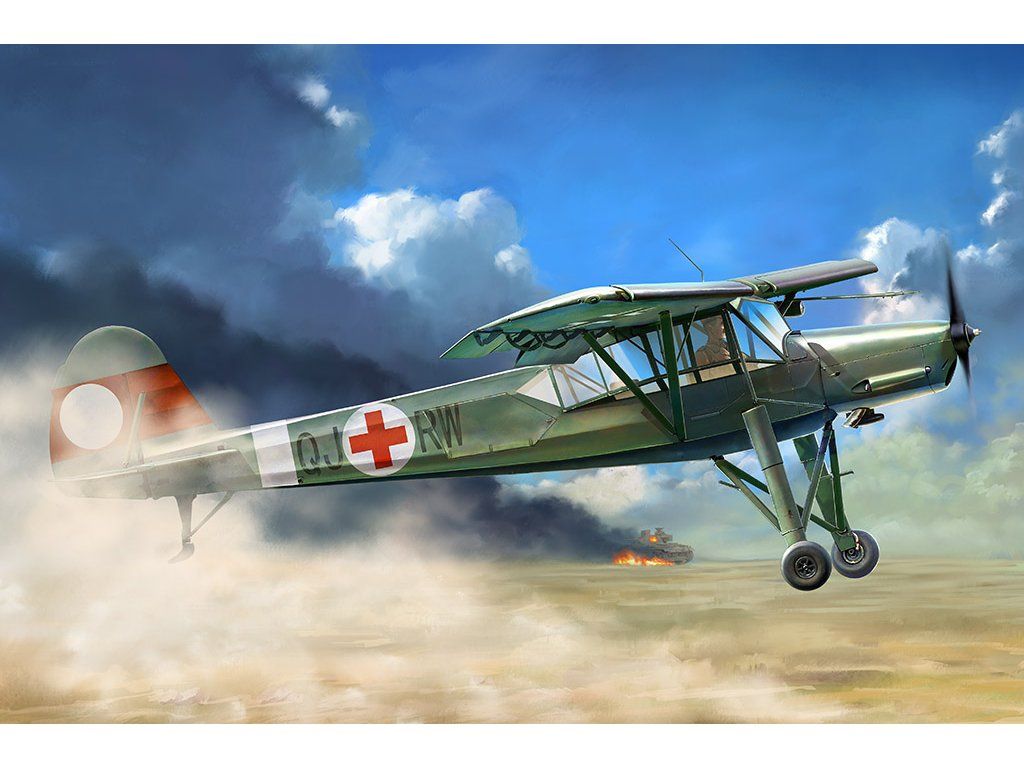 Stavebnice plastikového modelu německého spojovacího a dělostřeleckého pozorovacího letadla z období druhé světové války. Používalo se jako letecké taxi pro vysoce postavené důstojníky a generály, průzkumné letadlo ale i jako letadlo záchranné služby.