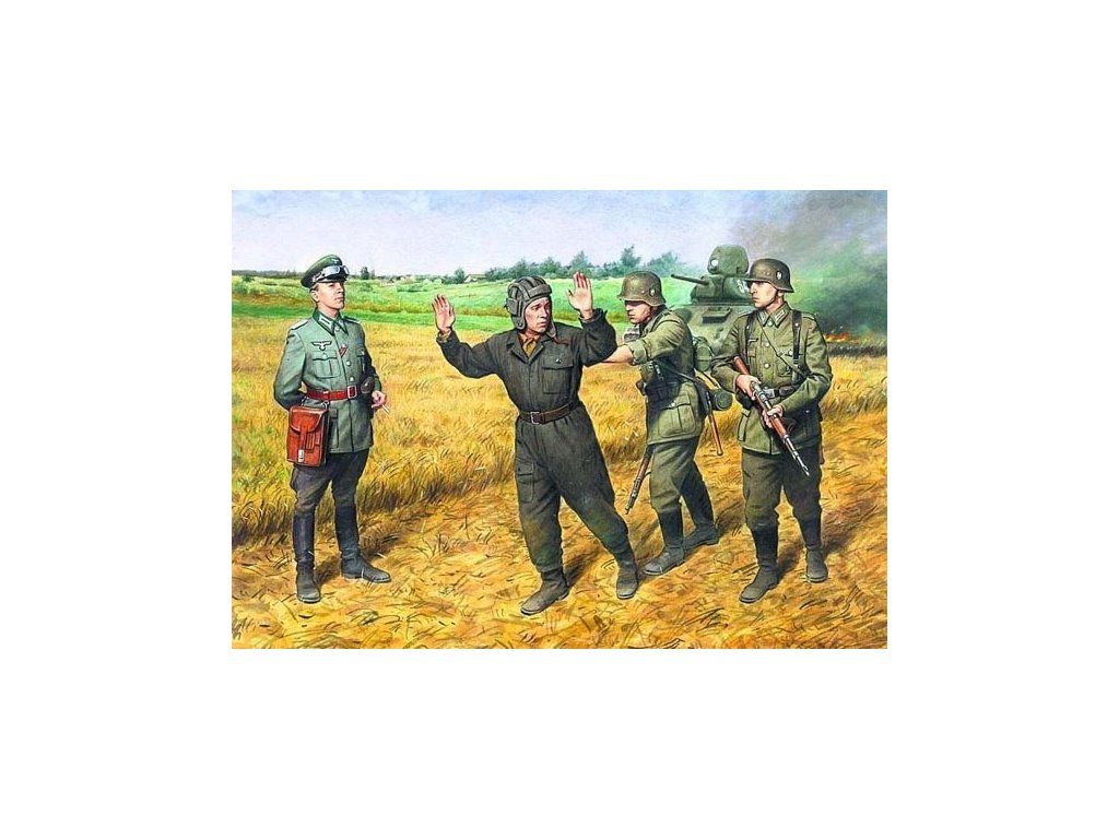 Obsahuje diely pre 4 figúrky - jedného dôstojníka a dvoch vojakov nemeckej armády a jedného zajatého sovietskeho tankistu.