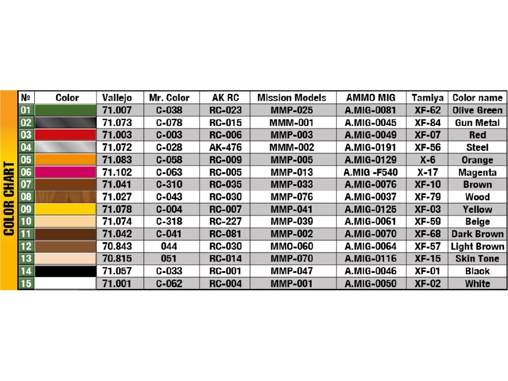 K sestavení modelu je třeba zakoupit: Lepidlo na plasty, barvy, štětce, modelářské nářadí. Dárkové sady / sady modelů mohou obsahovat také základní barvy, lepidlo a štětec.