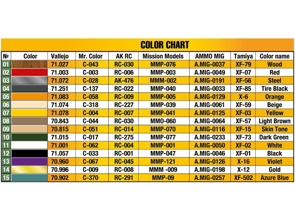 K sestavení modelu je třeba zakoupit: Lepidlo na plasty, barvy, štětce, modelářské nářadí. Dárkové sady / sady modelů mohou obsahovat také základní barvy, lepidlo a štětec.