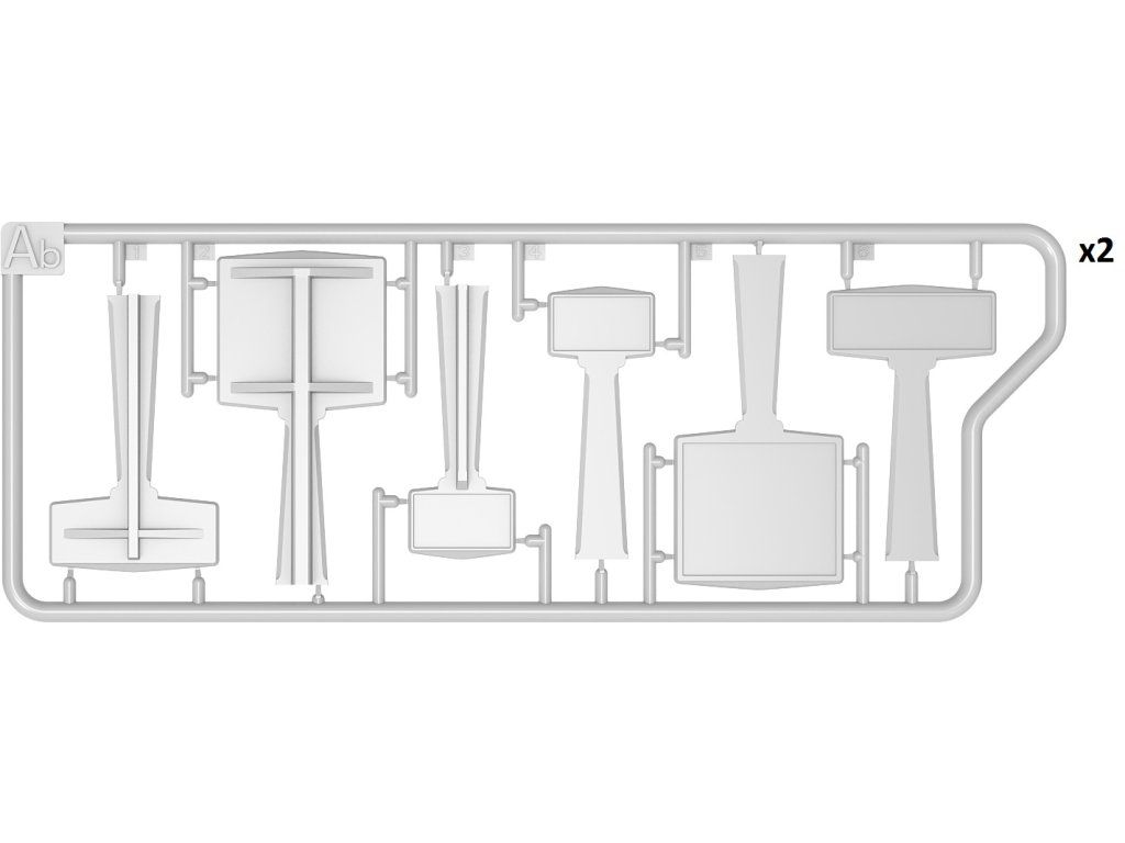 Stavebnice plastikového modelu sady betonových značek z oblasti francouzské Normandie ze 30. a 40. let 20. století.