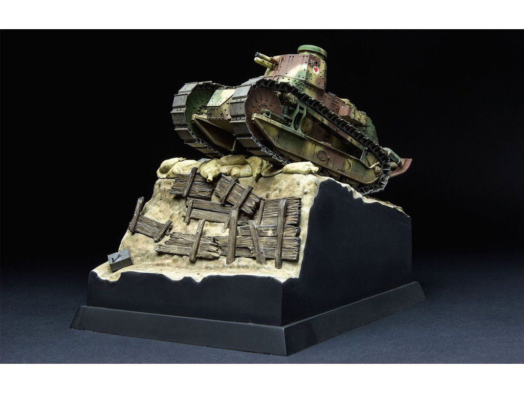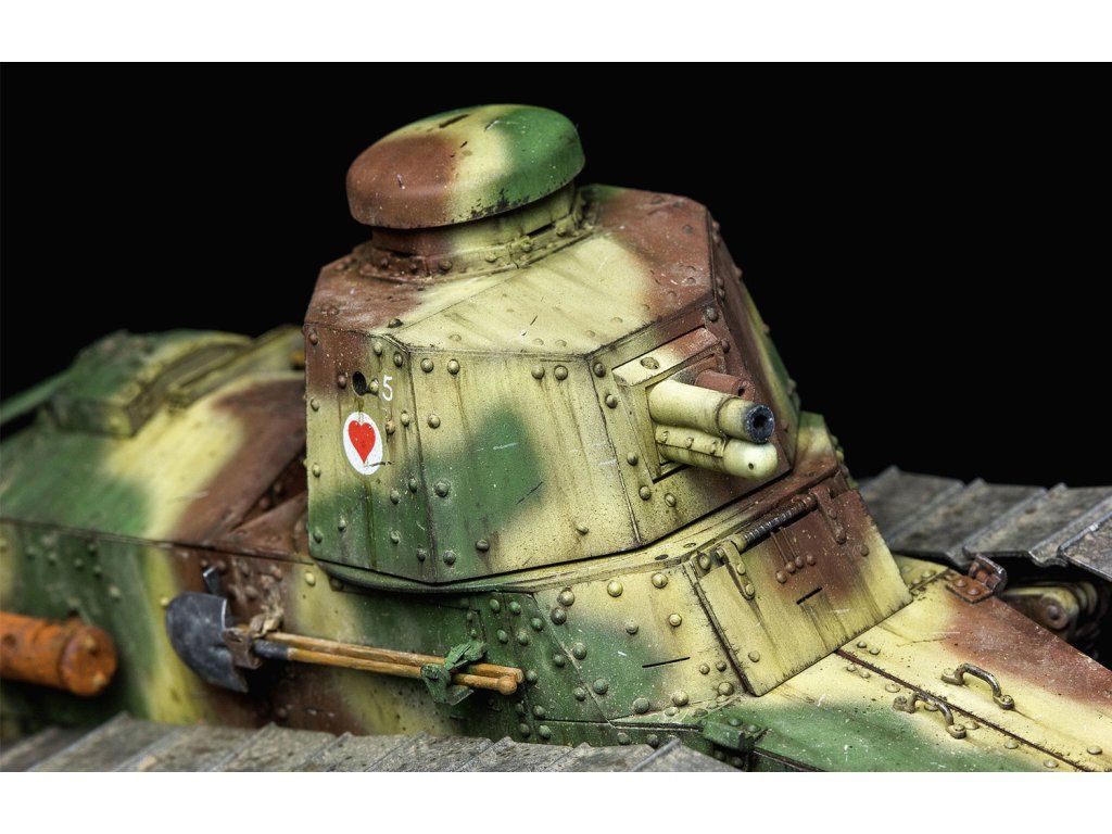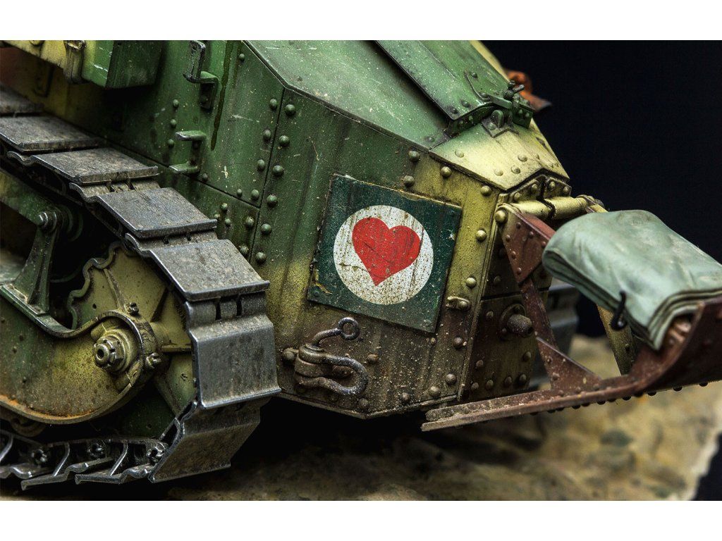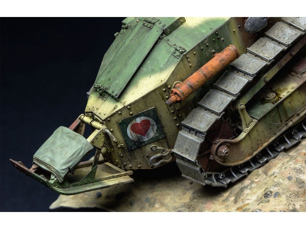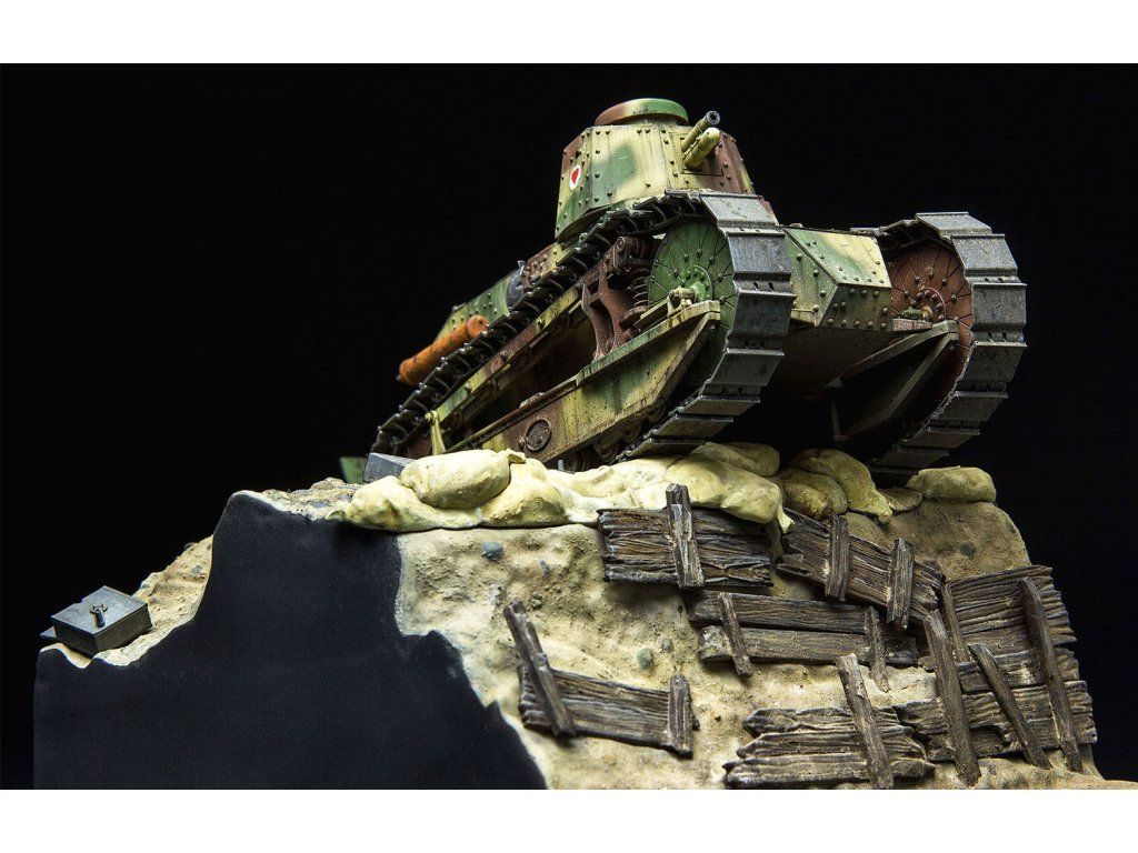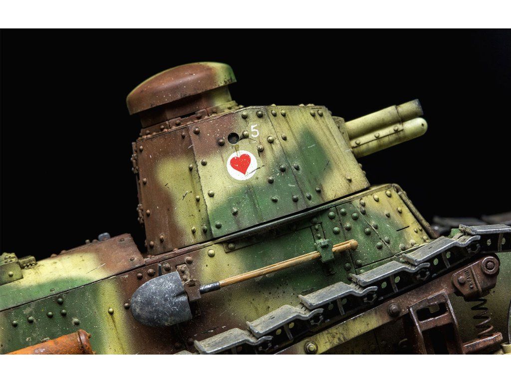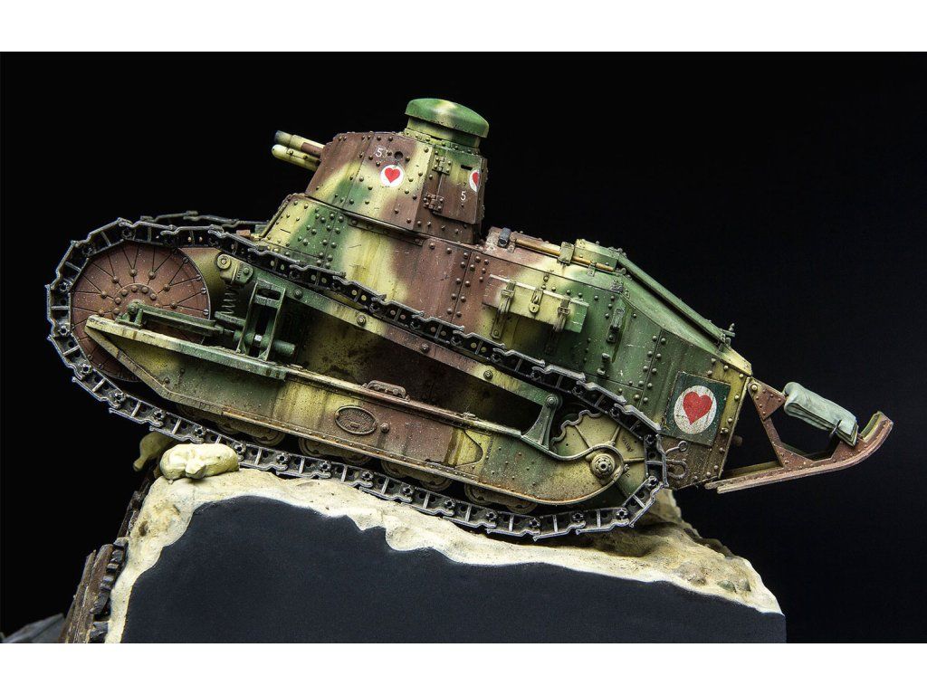 Stavebnice plastikového modelu francouzského lehkého tanku z 1. světové války. Tento tank byl ovšem používán i druhé světové válce.
