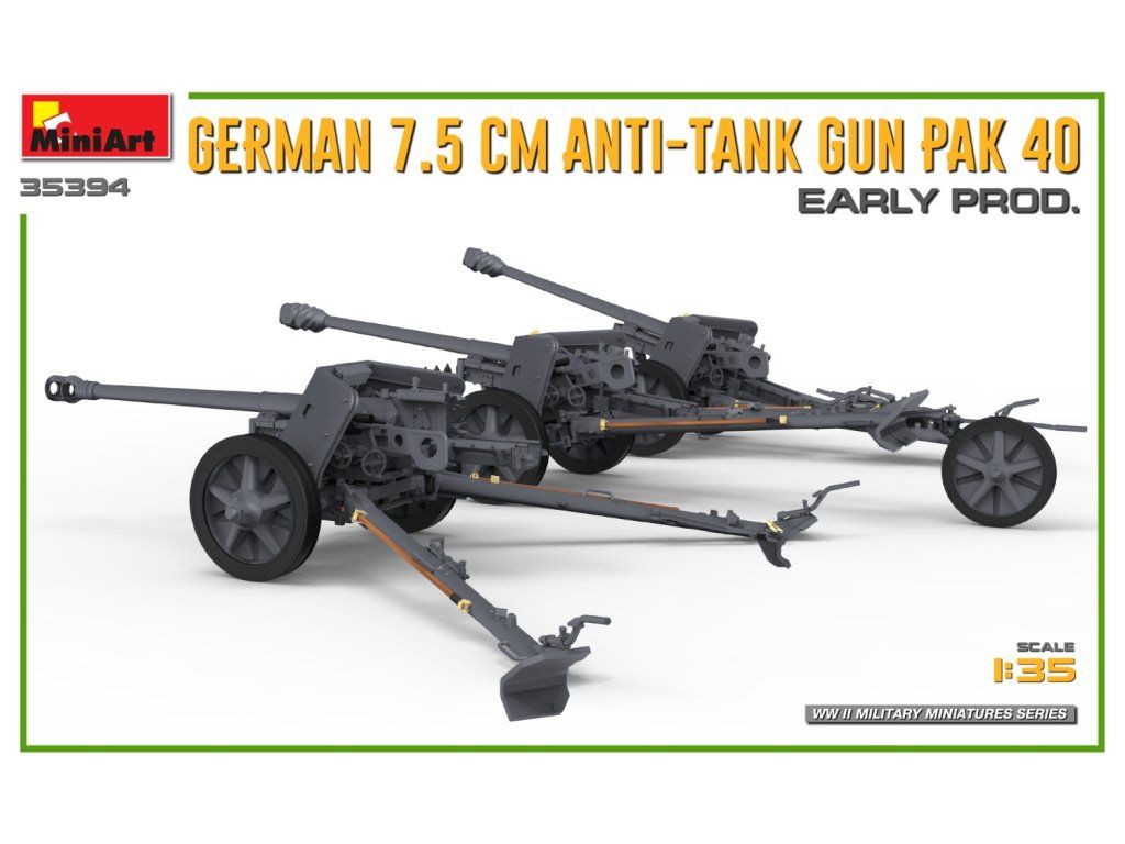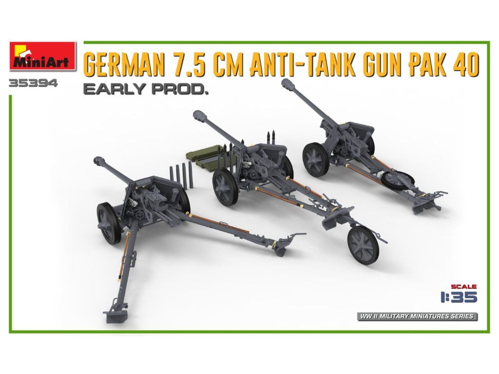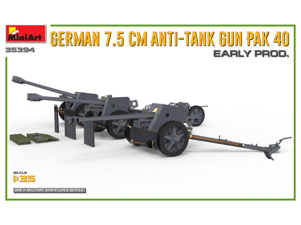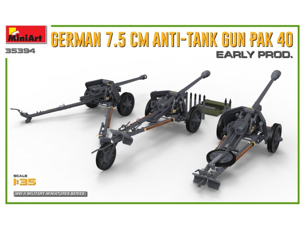 German 7.5cm Anti-Tank Gun PaK 40. Early Prod 1/35 MiniArt 35394