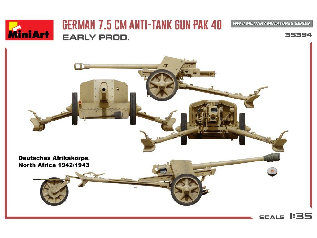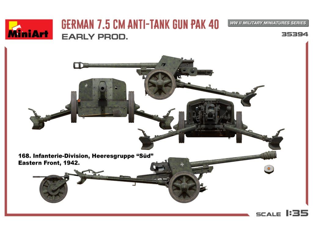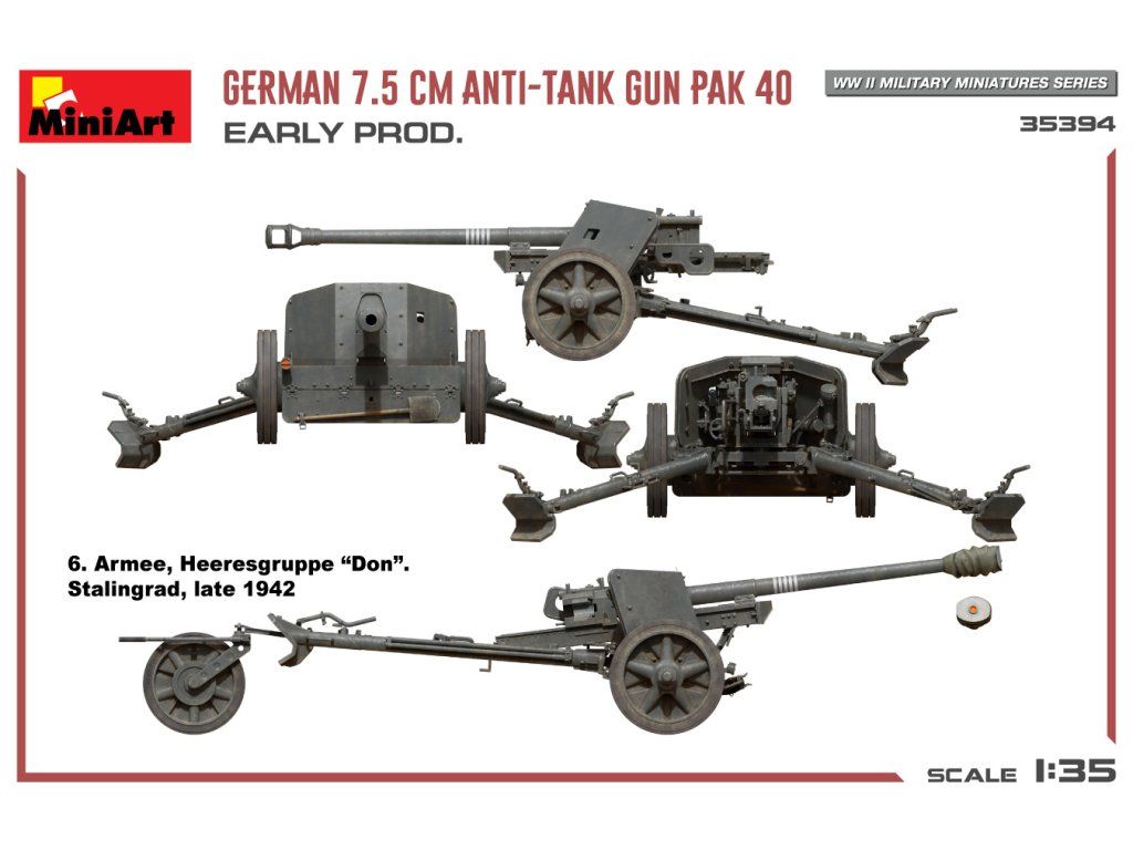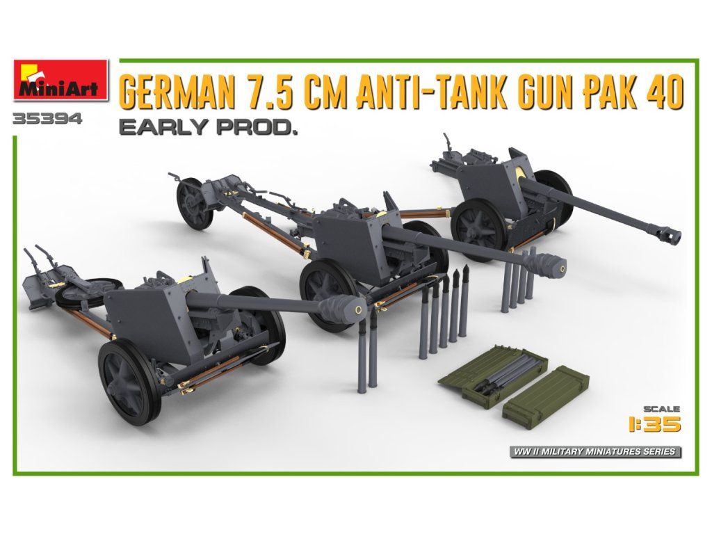 German 7.5cm Anti-Tank Gun PaK 40. Early Prod 1/35 MiniArt 35394