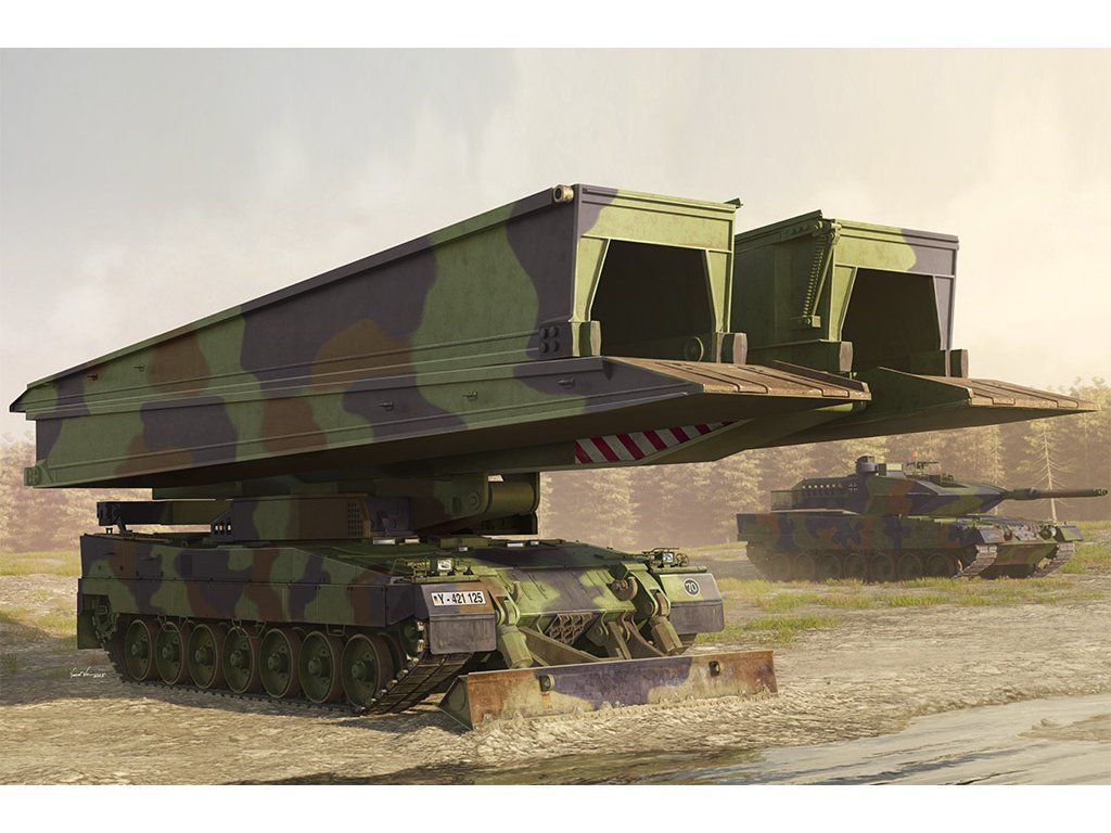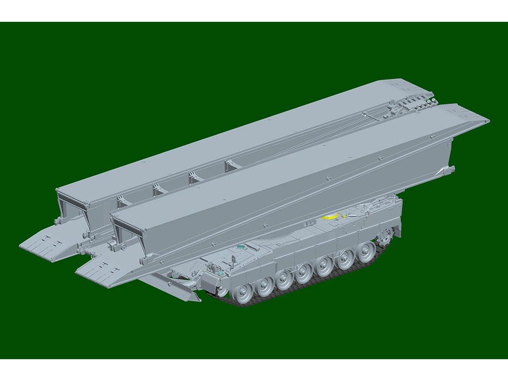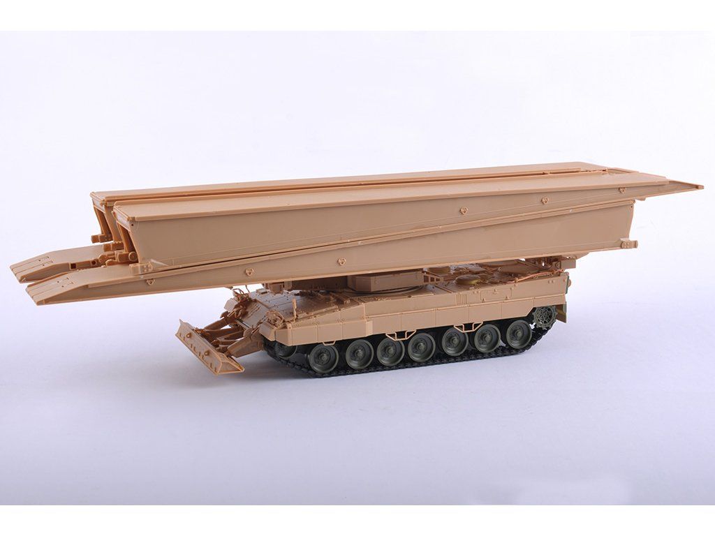 Stavebnica plastového modelu nemeckého obrneného technického vozidla určeného na prepravu, spustenie a vyzdvihnutie sklopného mosta.