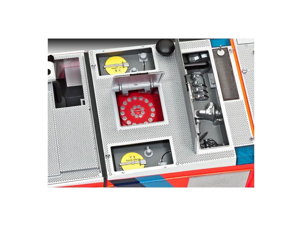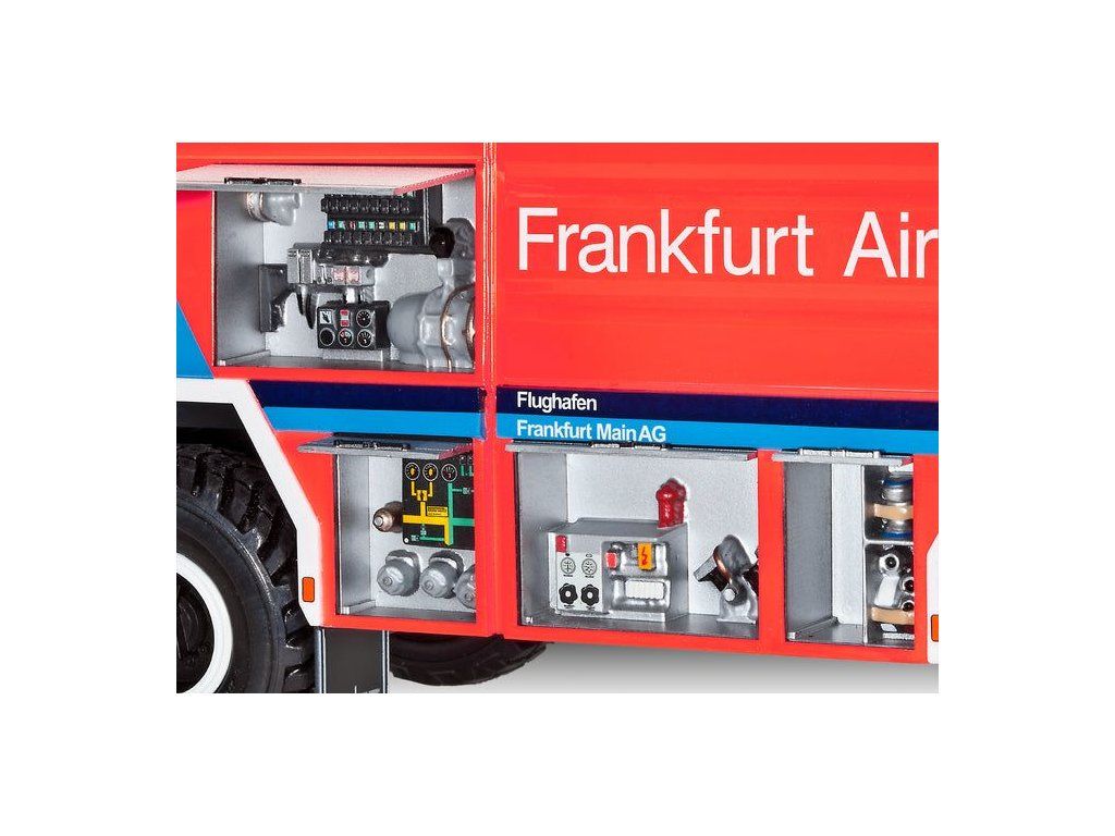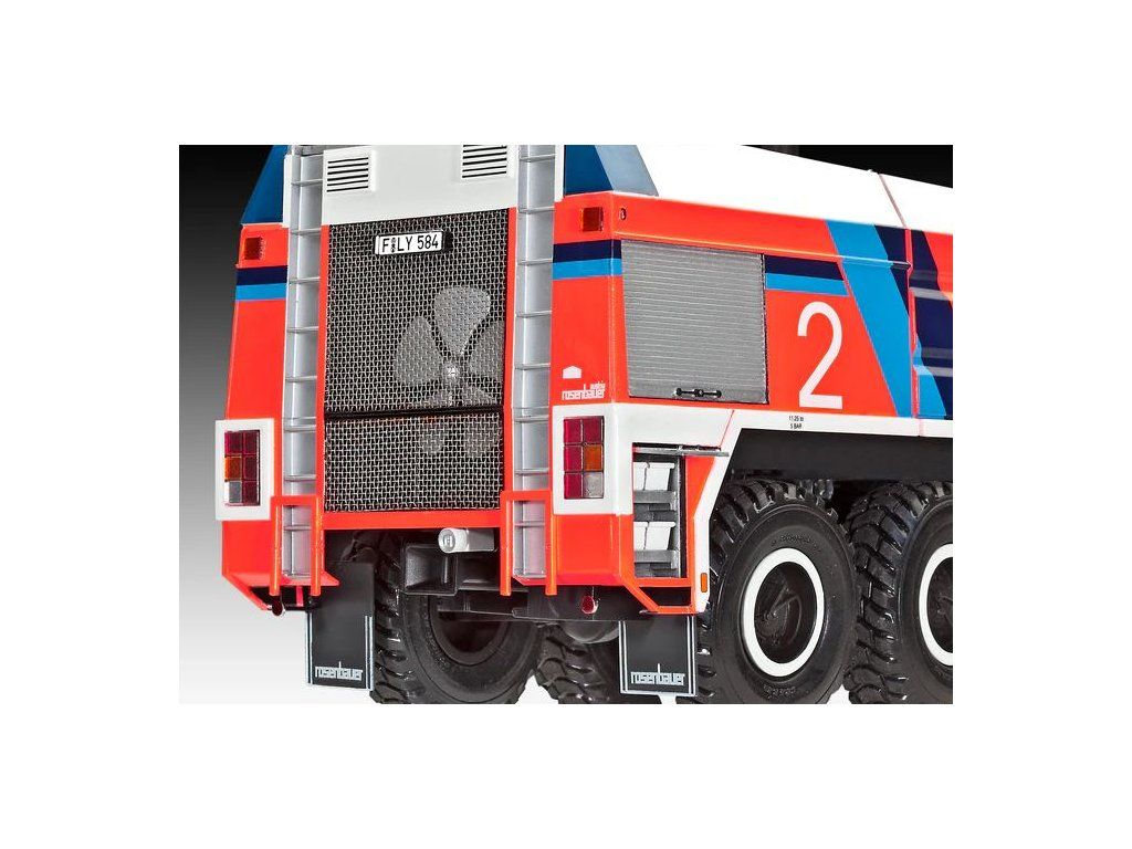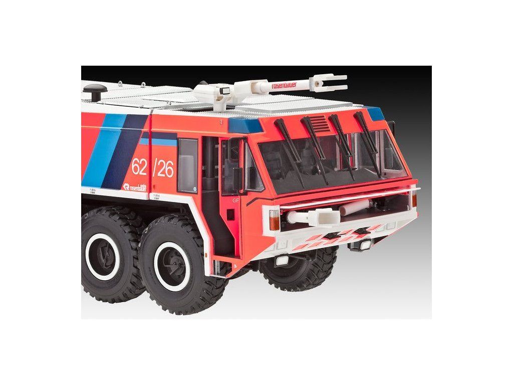 Stavebnice plastikového modelu hasičského auta určeného pro operace na letištích.