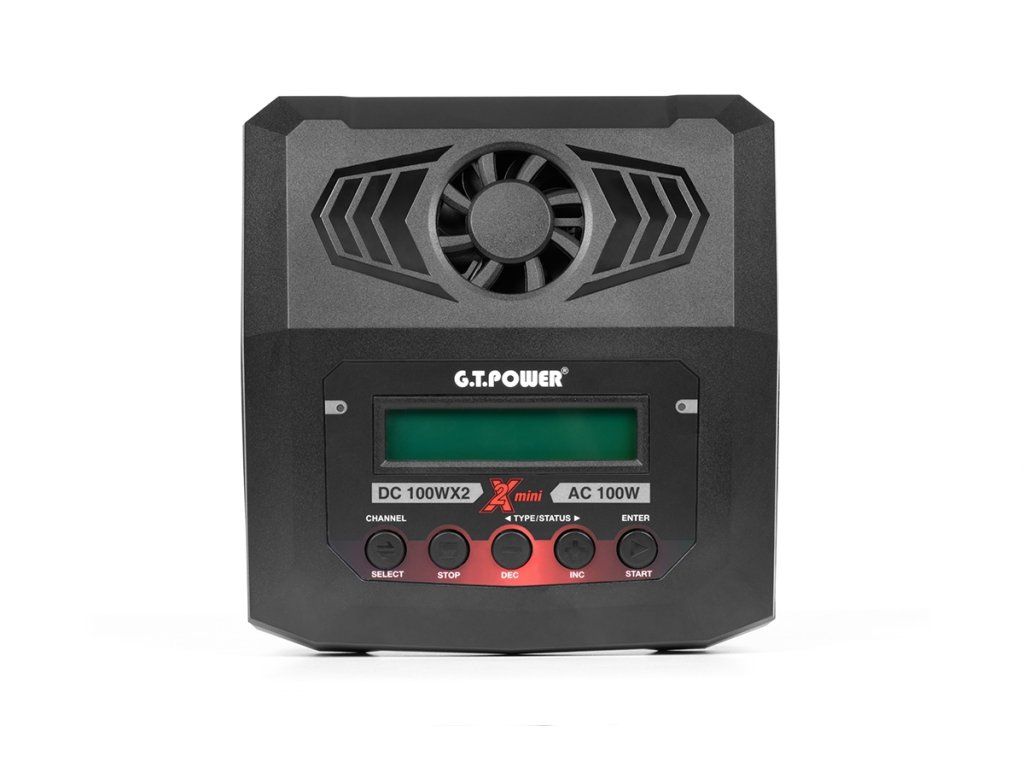 Dvoukanálová nabíječka G.T. POWER X2 mini 2x100W zkonstruovaná se snahou poskytnout vše potřebné k nabíjení dvou akumulátorů současně, včetně síťového zdroje a se snadnou obsluhou.