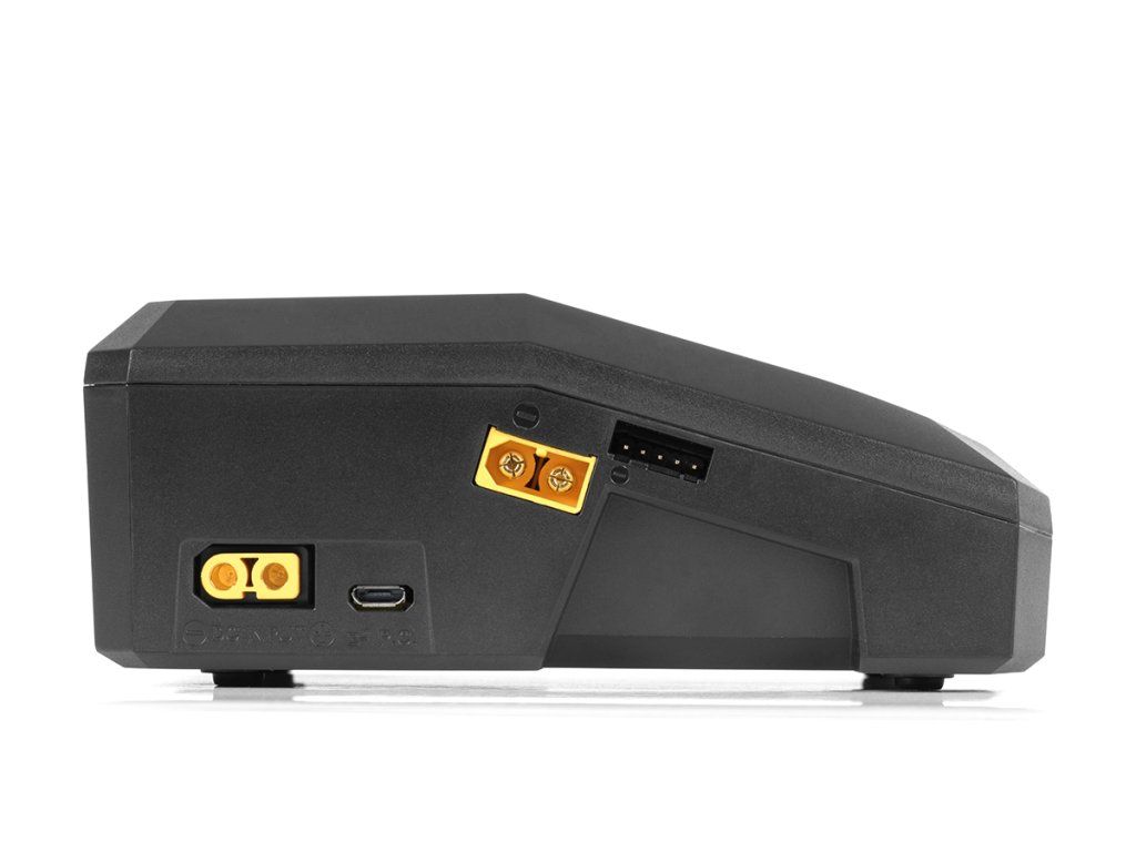 Nabíječka je v obou kanálech vybavena výstupními zásuvkami XT60 a univerzálními zásuvkami pro servisní konektory JST-XH umožňující přímo zapojit silové kabely akumulátoru a servisní konektory JST-XH sad 2-4S – pokud používáte sady s konektory XT60 a JST-XH, obejdete se zcela bez nabíjecích kabelů a adaptérů.