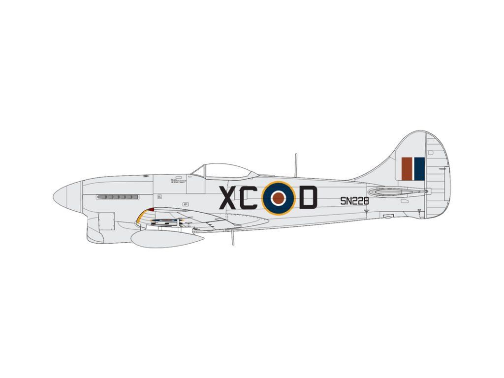 Stavebnice plastikového modelu britského stíhacího letadla ve verzi krátce po ukončení druhé světové války.