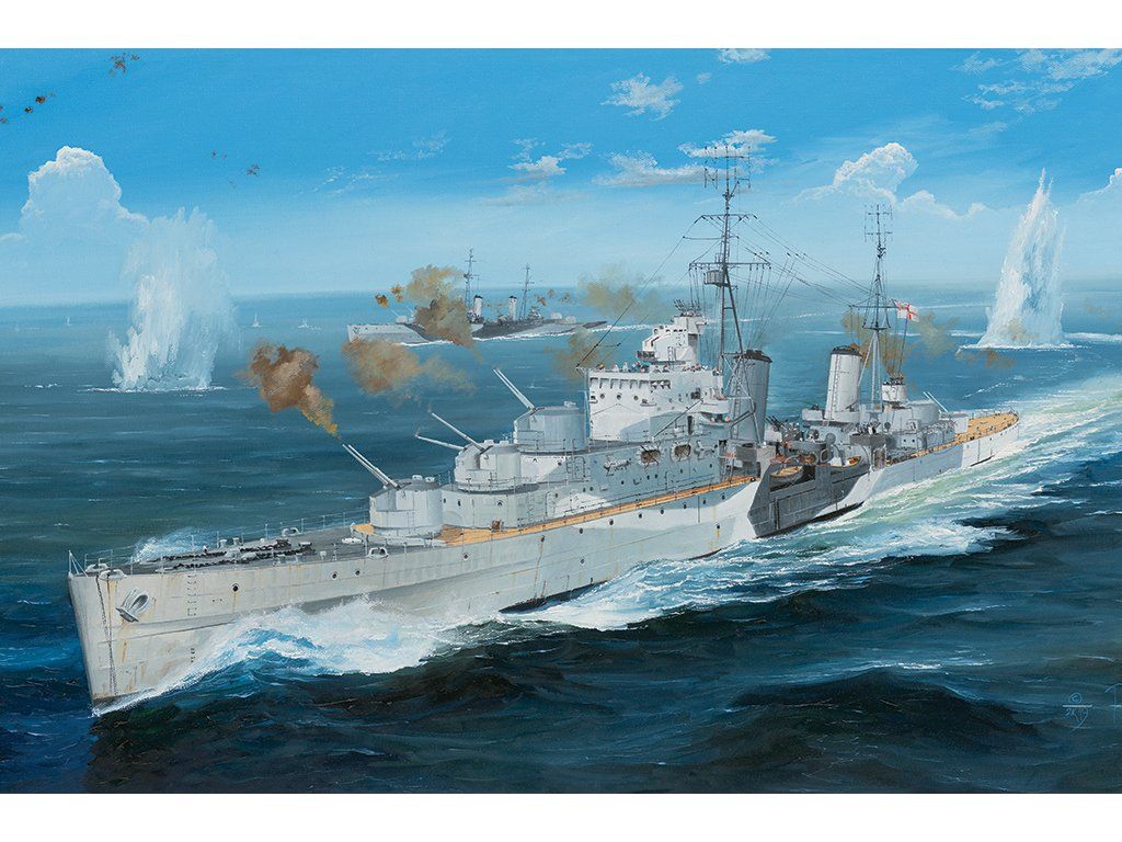 Stavebnice plastikového modelu britské fregaty z druhé světové války.