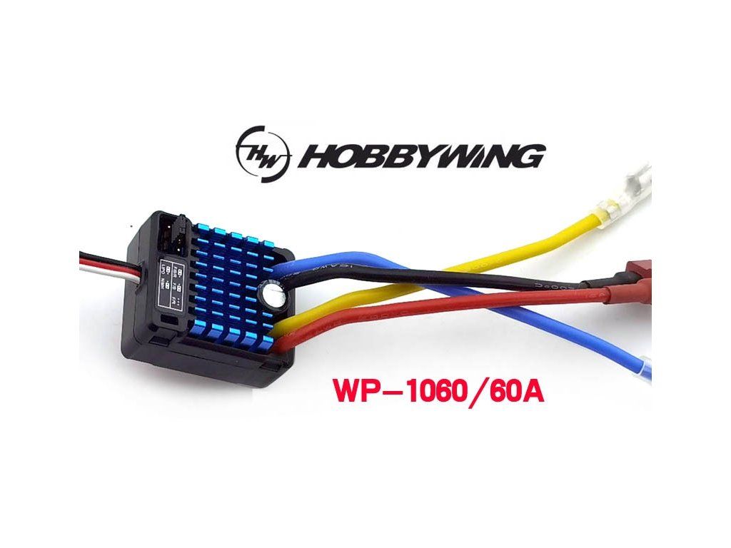 - Jednosmerný motor RC550, 60A regulátor a 15 kg servo.