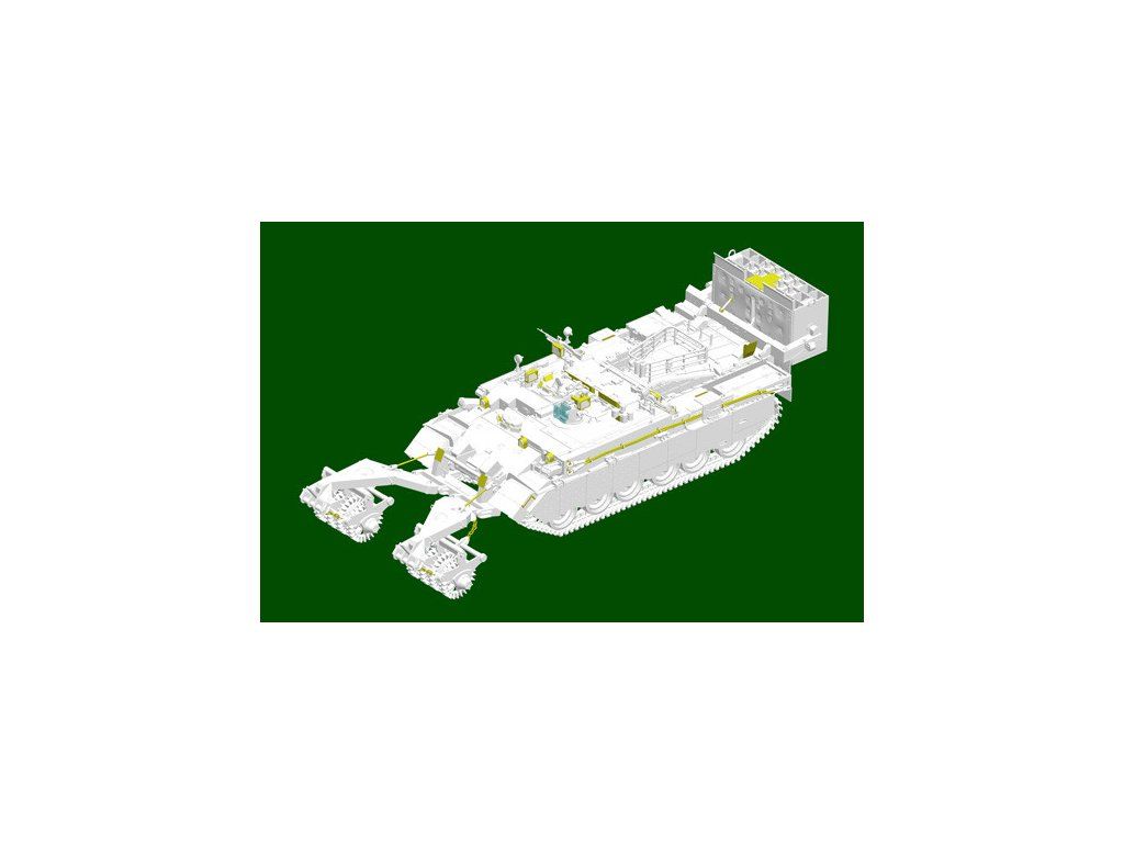 Stavebnica plastového modelu izraelského pásového transportéra s odmínovacím zariadením.
