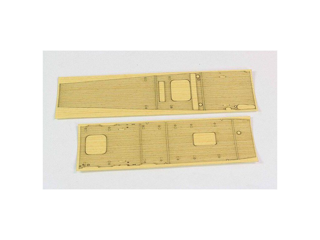 Sada doplnkov pre plastový model japonskej lietadlovej lode Akagi, Hasegawa 49227. Samolepiaca drevená paluba, fotoleptané diely pre výťahy a fólia na značenie paluby.